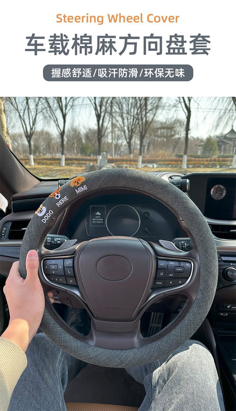 리넨 스티어링 휠 커버 새로운 자수 직물 미끄럼 방지 땀 흡수성 초박형 사계절 유니섹스 자동차 핸들 커버 공장스토어 가기