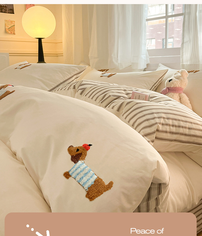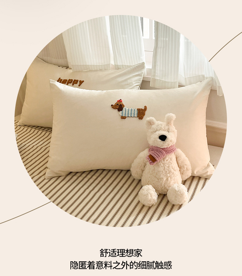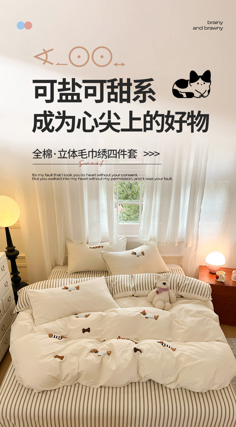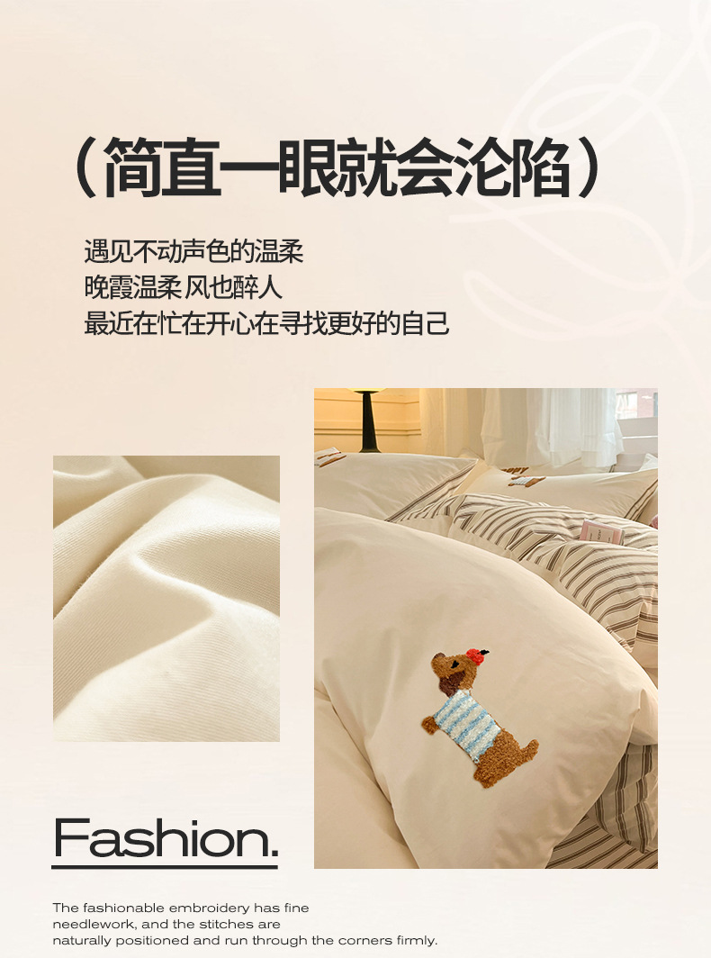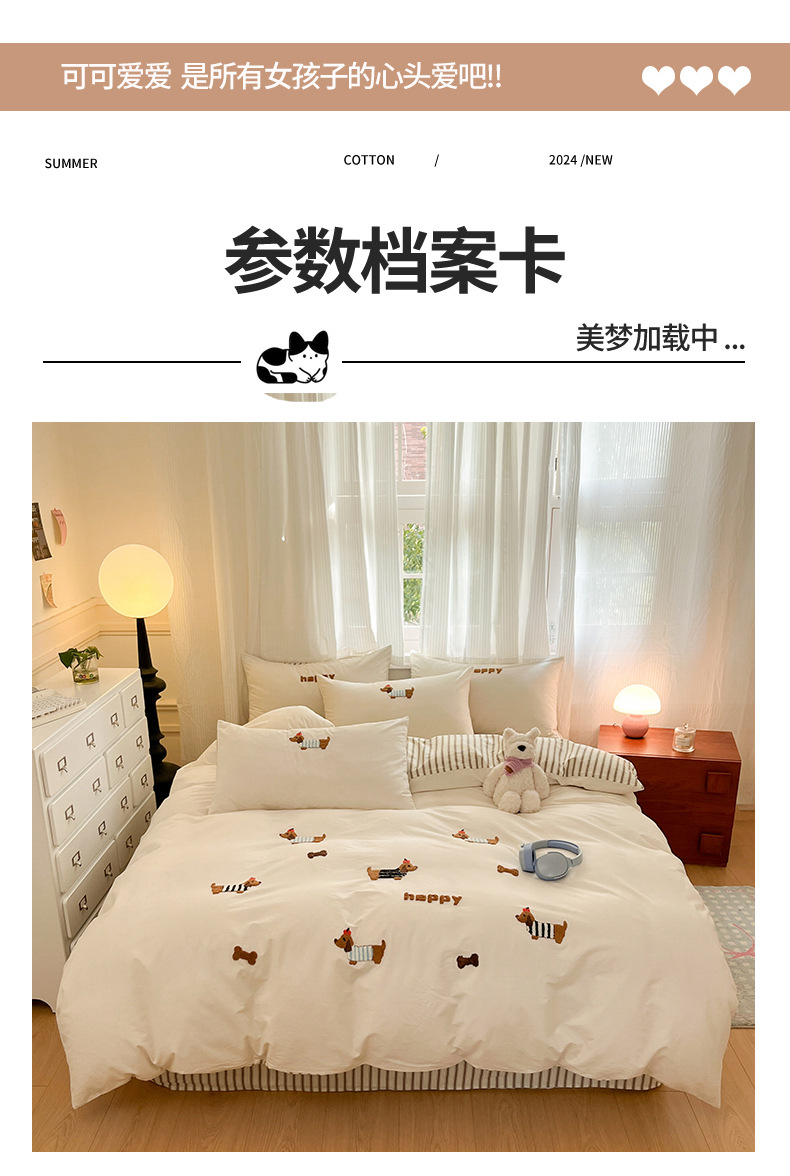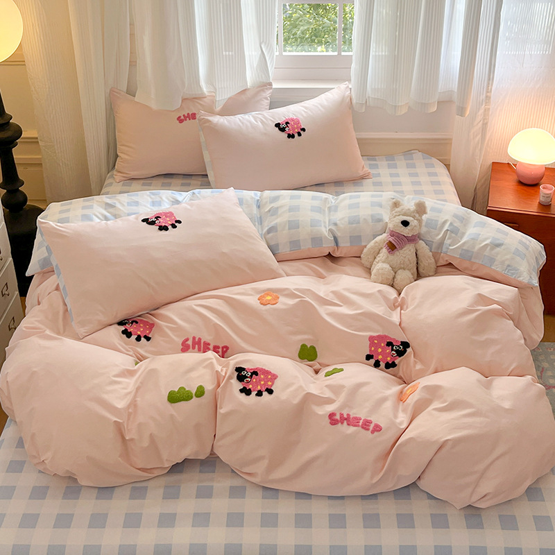 작은 신선한 면 4 조각 만화 귀여운 면 수건 자수 퀼트 침대 시트 기숙사 3 피스 침구스토어 가기
