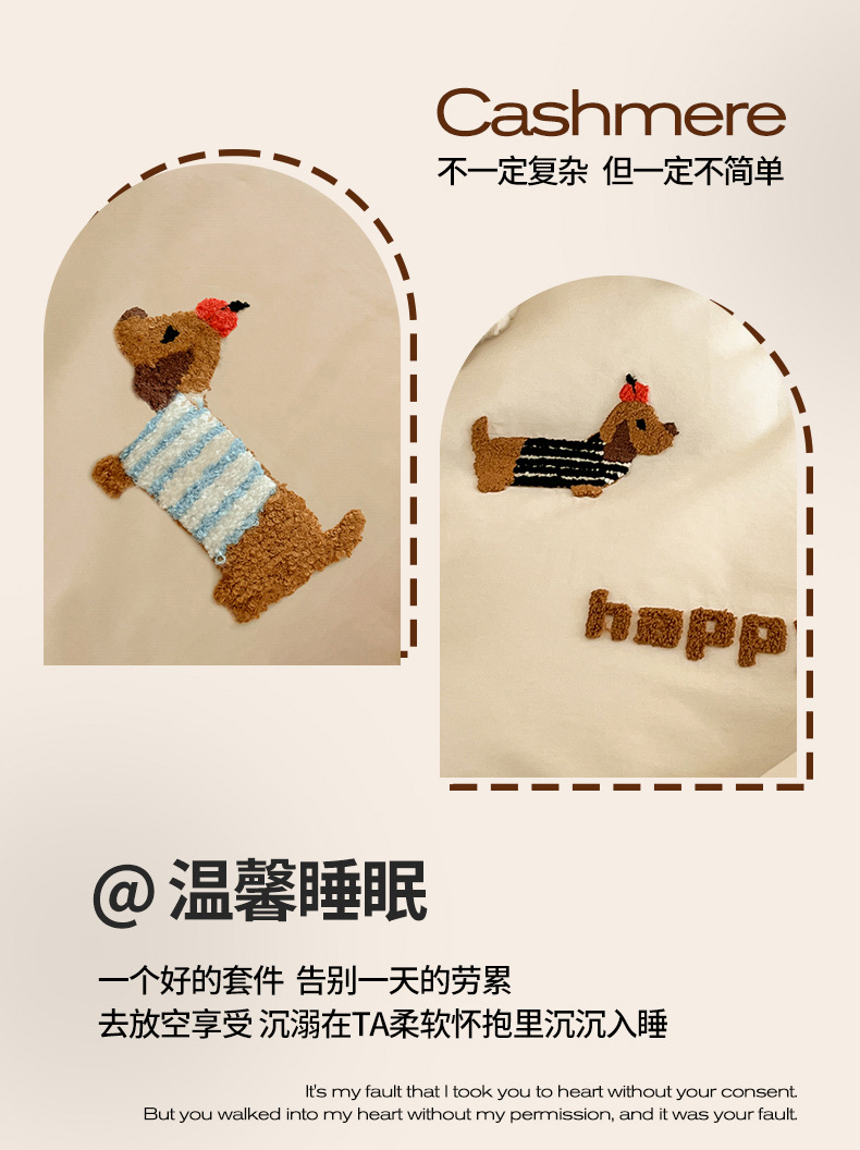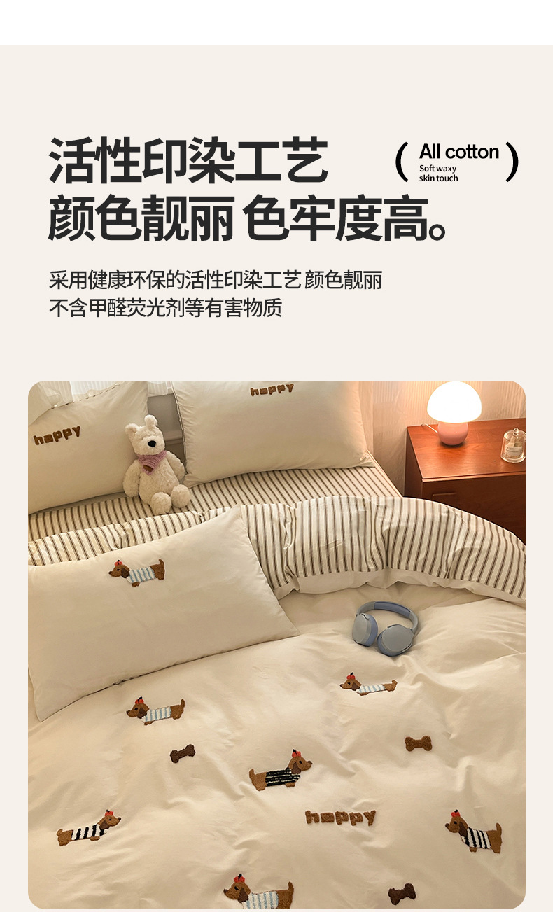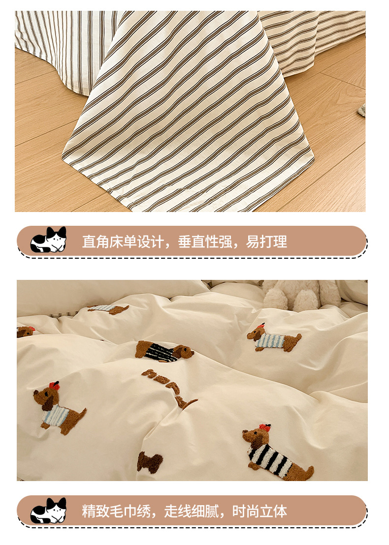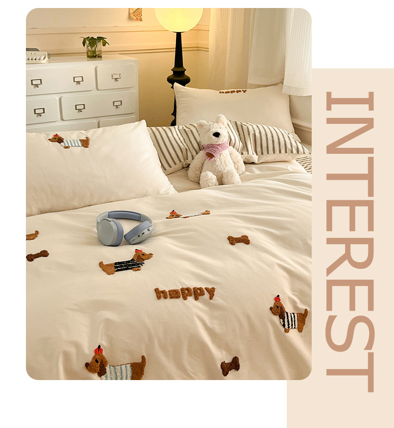 작은 신선한 면 4 조각 만화 귀여운 면 수건 자수 퀼트 침대 시트 기숙사 3 피스 침구