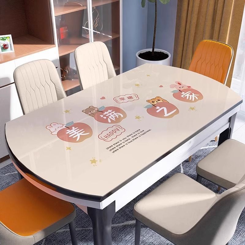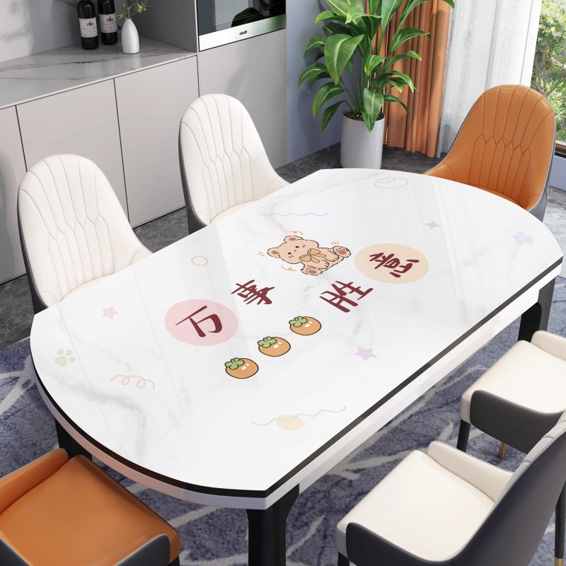 3 개의 식사 4 계절 타원형 테이블 매트 PVC 투명한 부드러운 유리 방수 및 내유성 단열 워시 프리 접이식 테이블 천스토어 가기