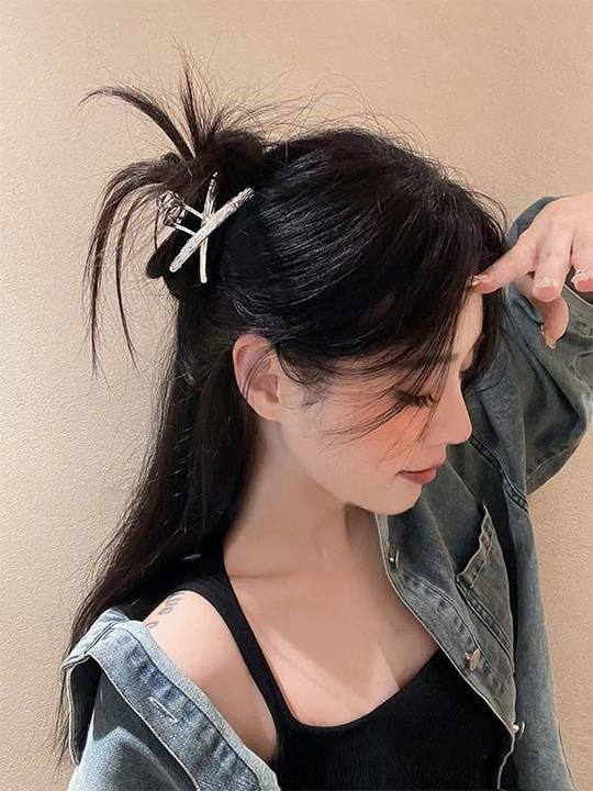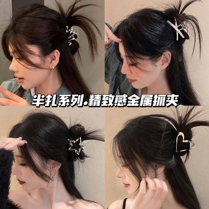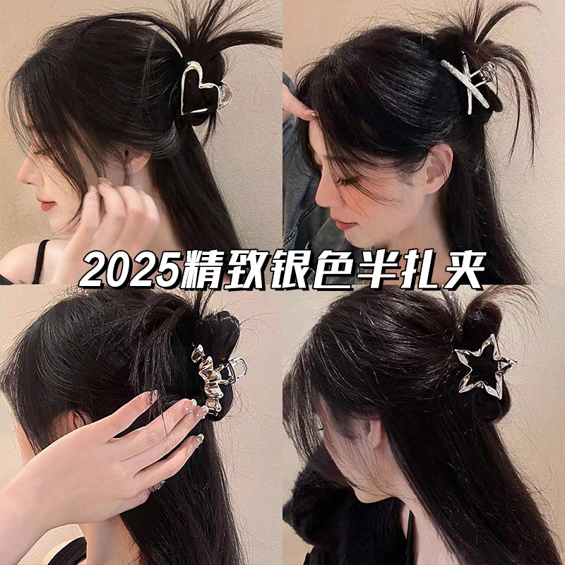 분위기 감각 실버 금속 잡아 클립 여성 틈새 디자인 고급 센스 스몰 사이즈 뒤 머리 머리핀 하프 헤어 상어 클립