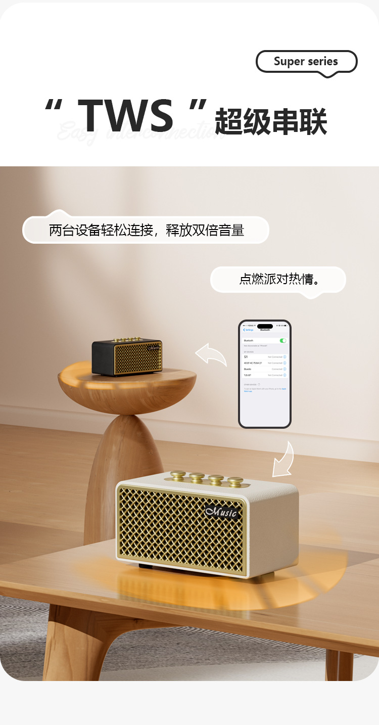 휴대용 복고풍 패션 무선 서브 우퍼 홈 데스크탑 블루투스 오디오 듀얼 무빙 코일 스피커 원 라인 스피커스토어 가기