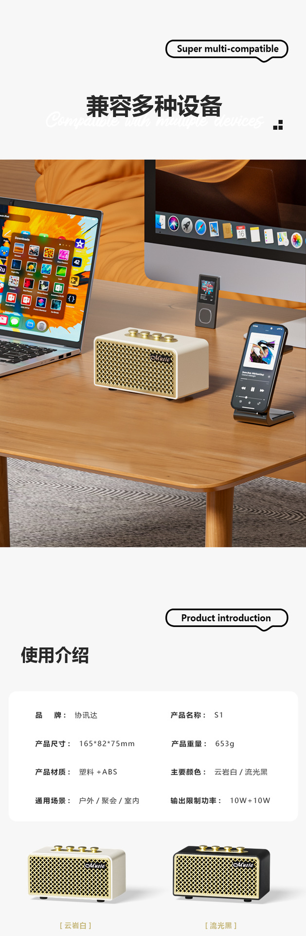 • Yunyan 화이트/무선 블루투스 스피커
