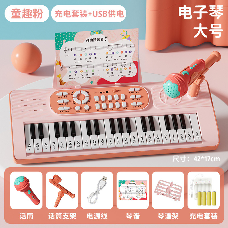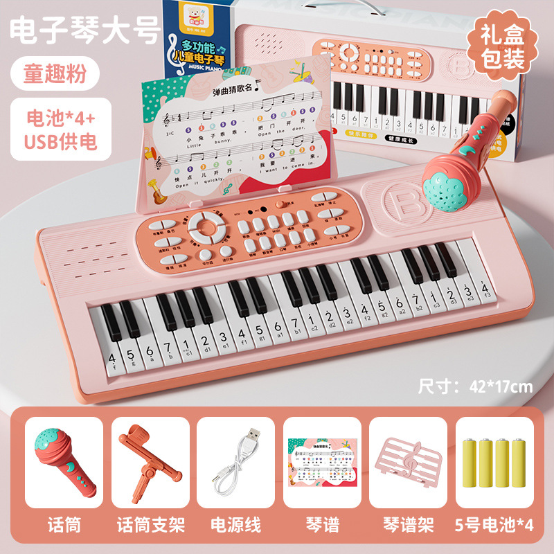 37 키 어린이 전자 피아노 장난감 마이크 소녀 아기 1 3 세 초보자 홈 작은 피아노를 재생할 수 있습니다