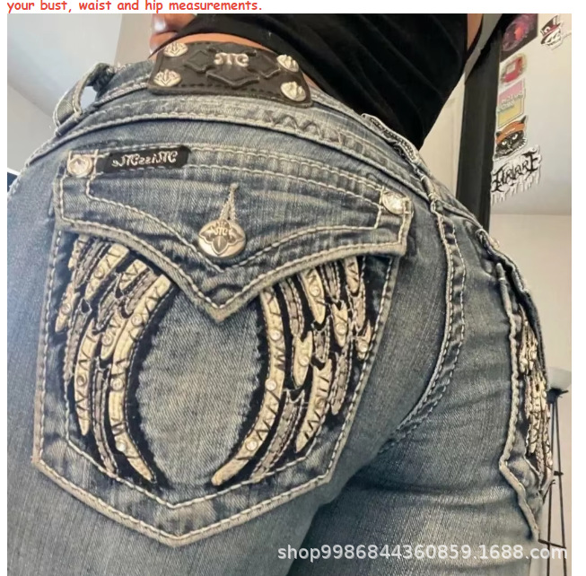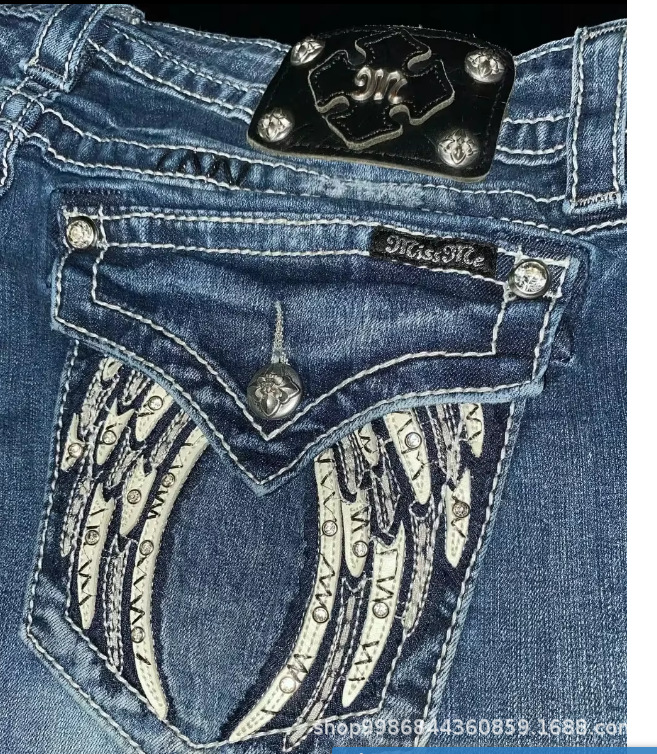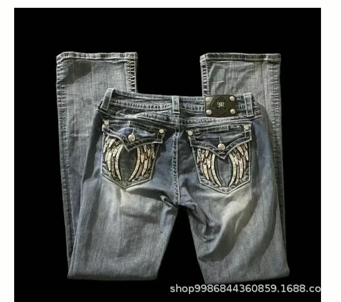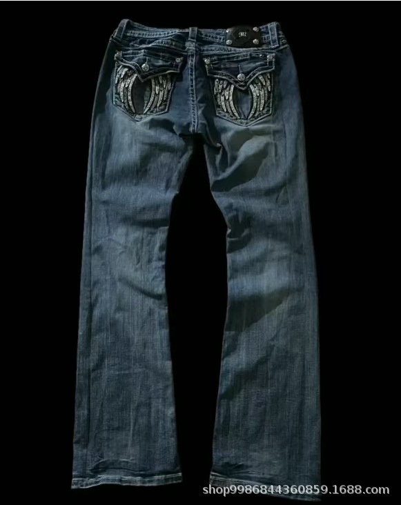 패션 트렌드 느슨한 캐주얼 스트레이트 팬츠 국경 대외 무역 봄과 가을 새로운 복고풍 자수 다이아몬드 청바지스토어 가기