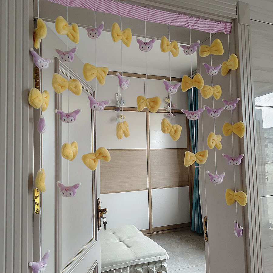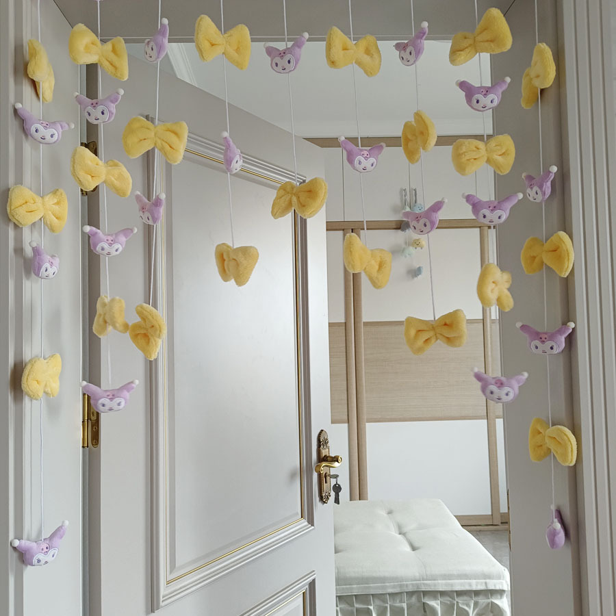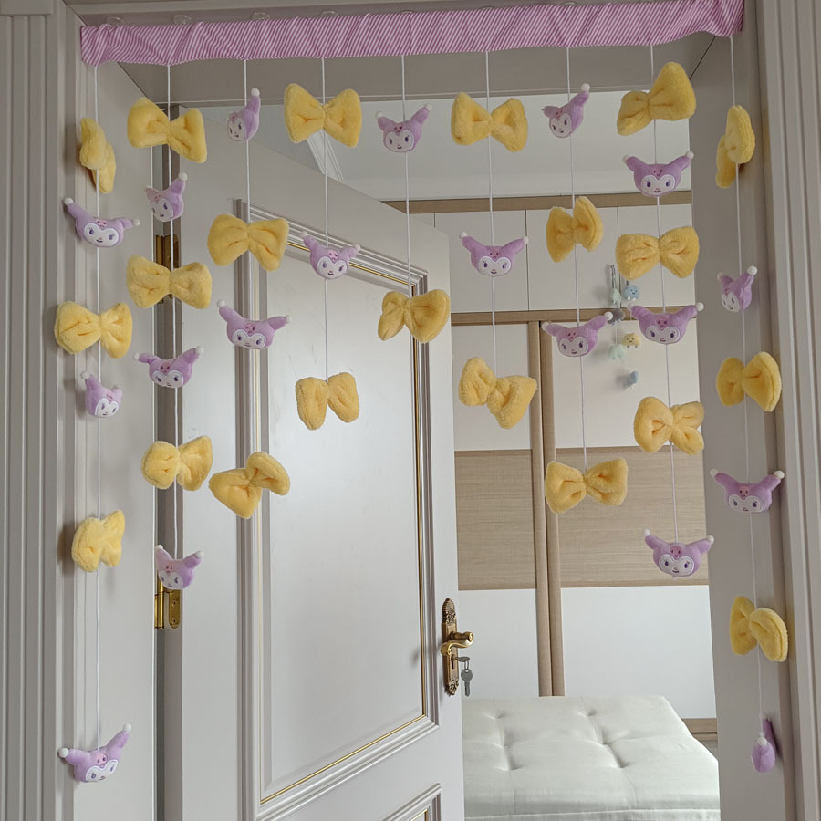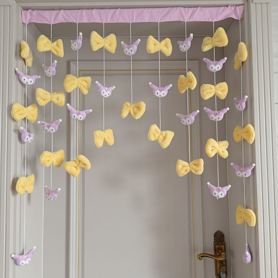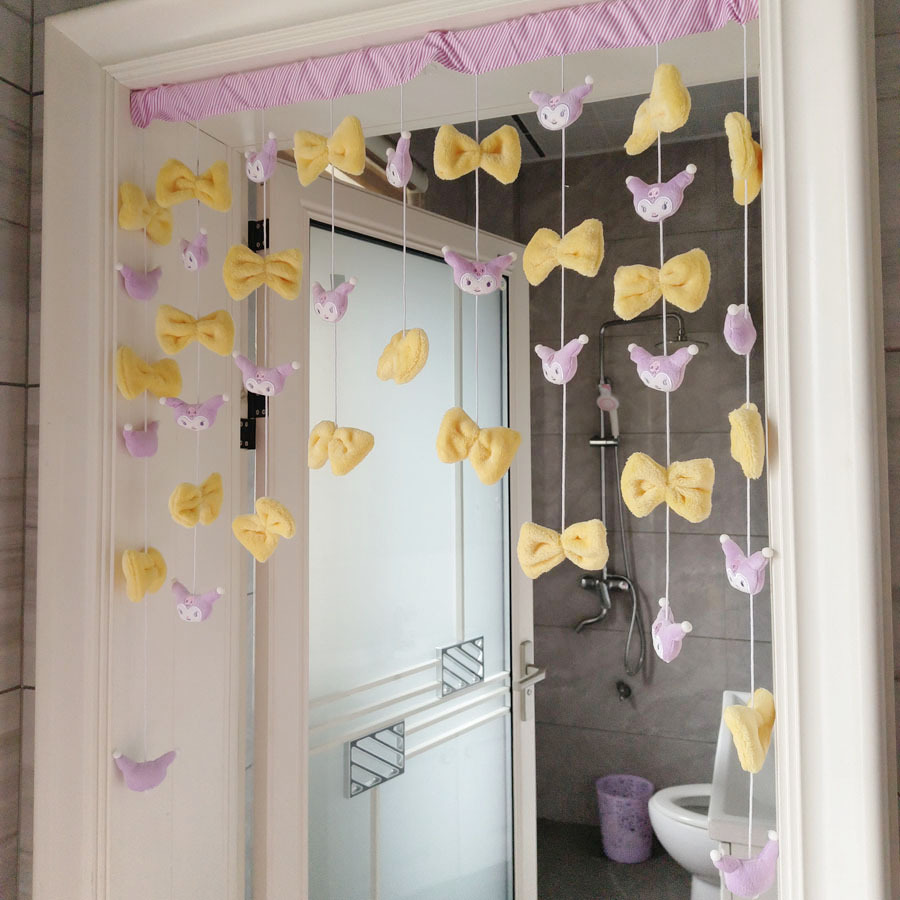 노란색 활 문 커튼 펀치 프리 파티션 도어 커튼 4 계절 유니버설 도어 커튼 장식 액세서리 인형 문 커튼 침실 커튼