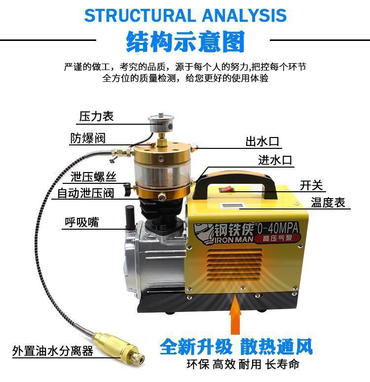 철 남자 고압 공기 펌프 30mpa 전기 공기 실린더 수냉식 공기 펌프 40MPA 작은 공기 펌프 무료 배송