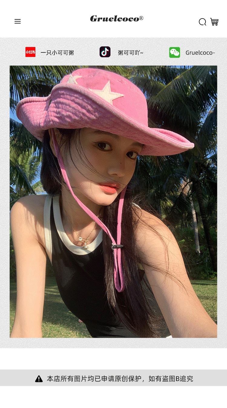 도매 모자 레트로 스타 웨스턴 카우보이 모자 여성 여름 그늘 선 스크린 등산 모자 야외 캠핑 어부 모자스토어 가기