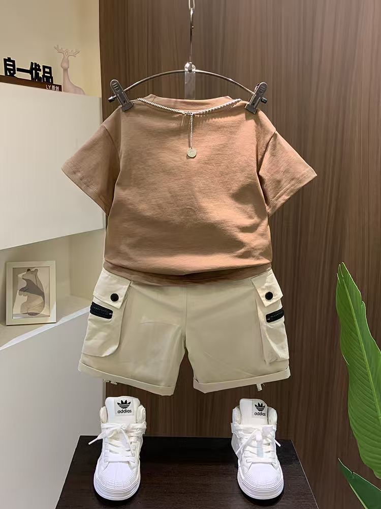 2025 새로운 아동복 소년 여름 짧은 소매 세트 소년 여름 옷 아기 시원한 튀긴 거리 여름 옷스토어 가기