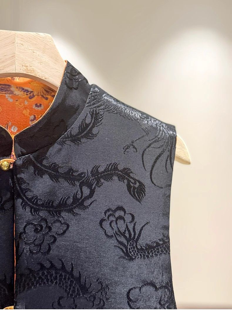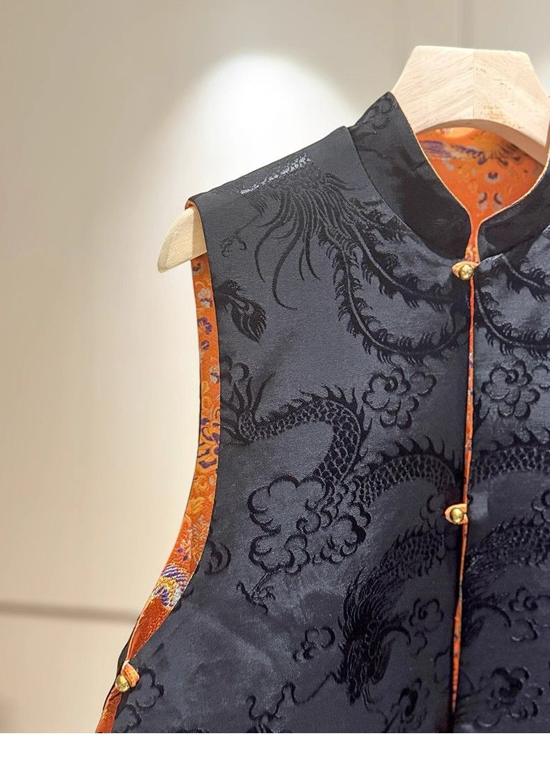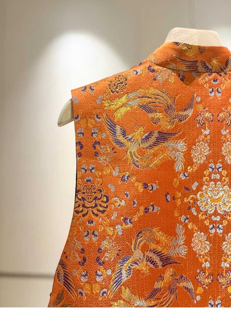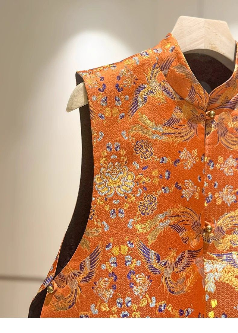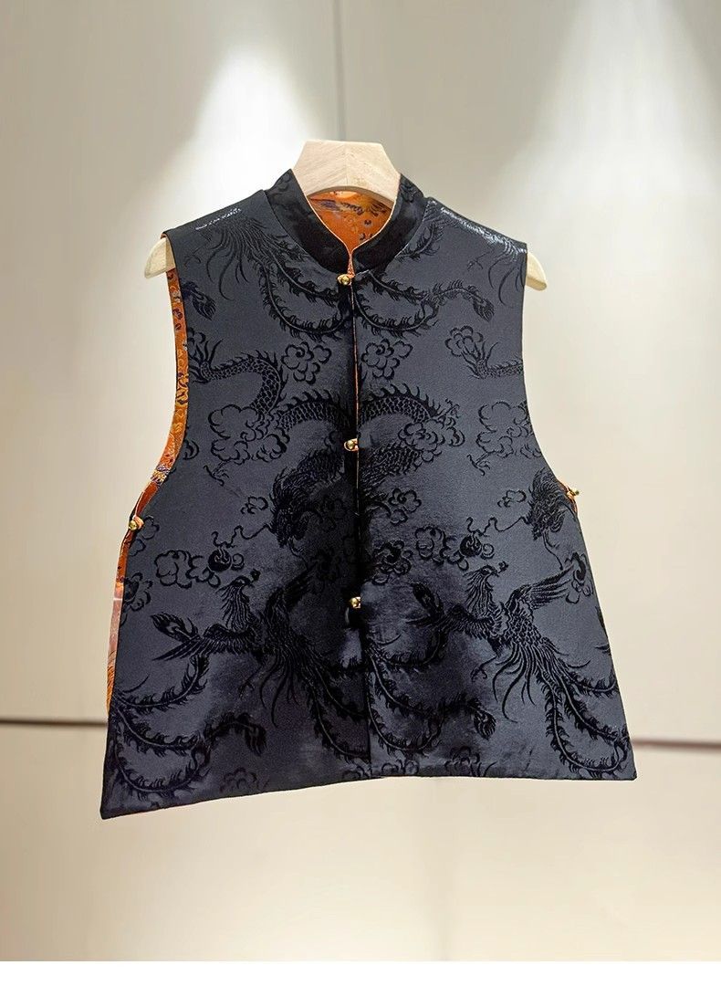 피닉스 프린트로 몸매를 가려주는 중국풍 신중국풍 조끼 여성용 2025 봄 신상 고급스러운 중국풍 양면 착용 조끼