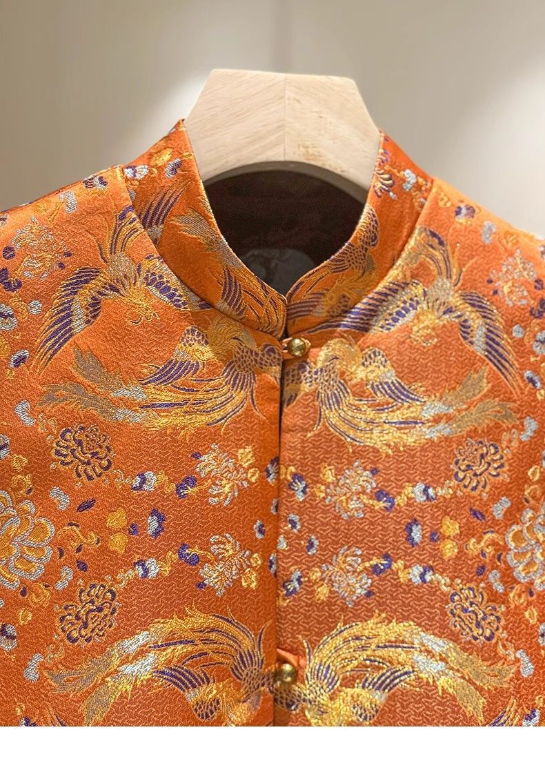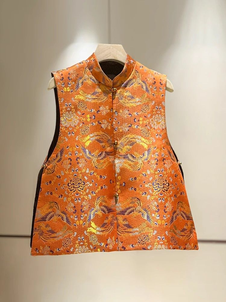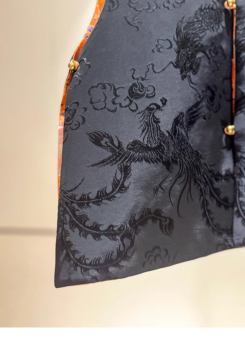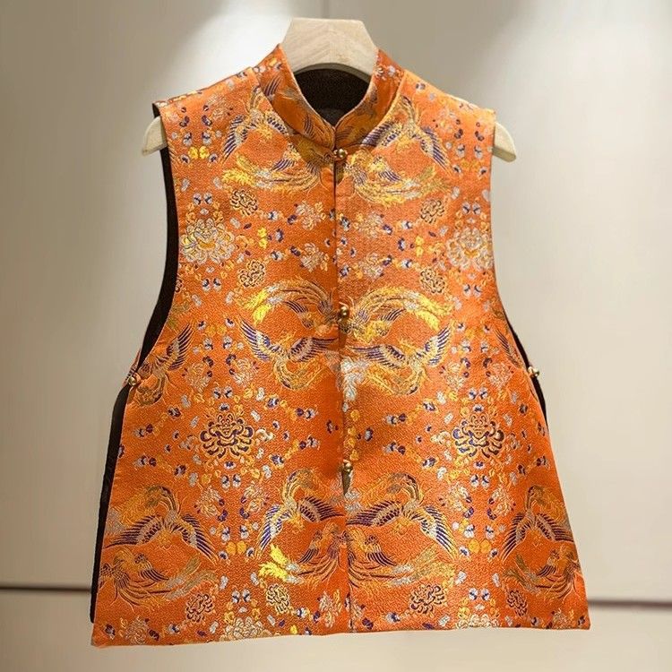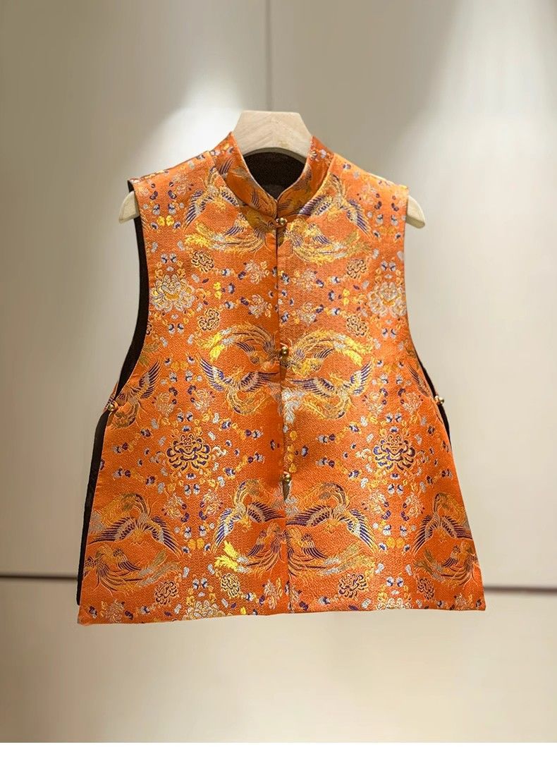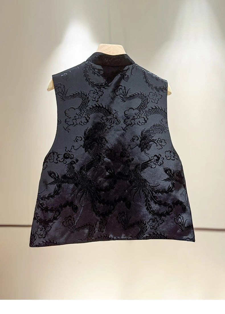 피닉스 프린트로 몸매를 가려주는 중국풍 신중국풍 조끼 여성용 2025 봄 신상 고급스러운 중국풍 양면 착용 조끼스토어 가기