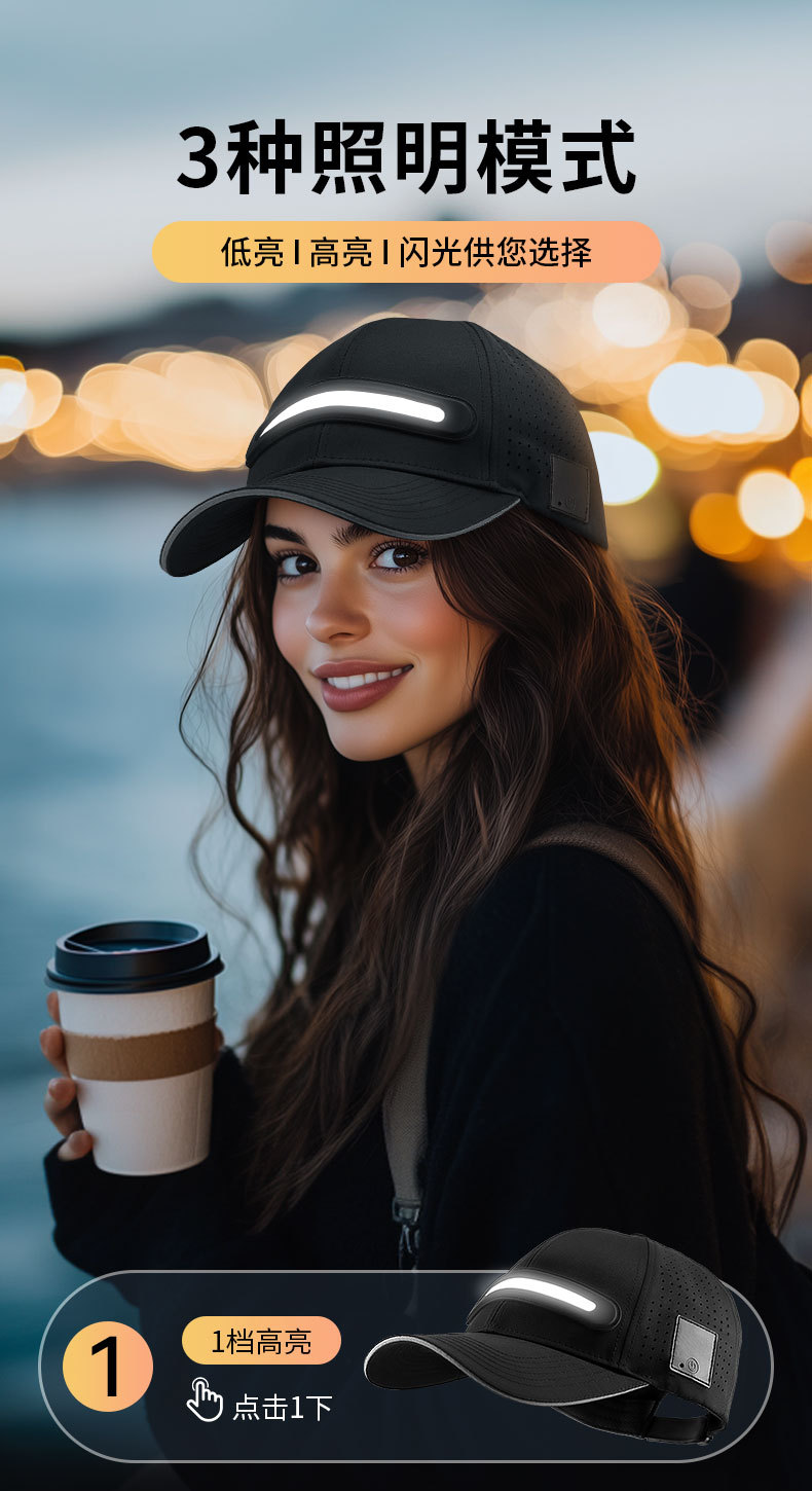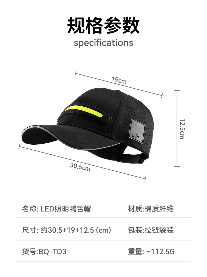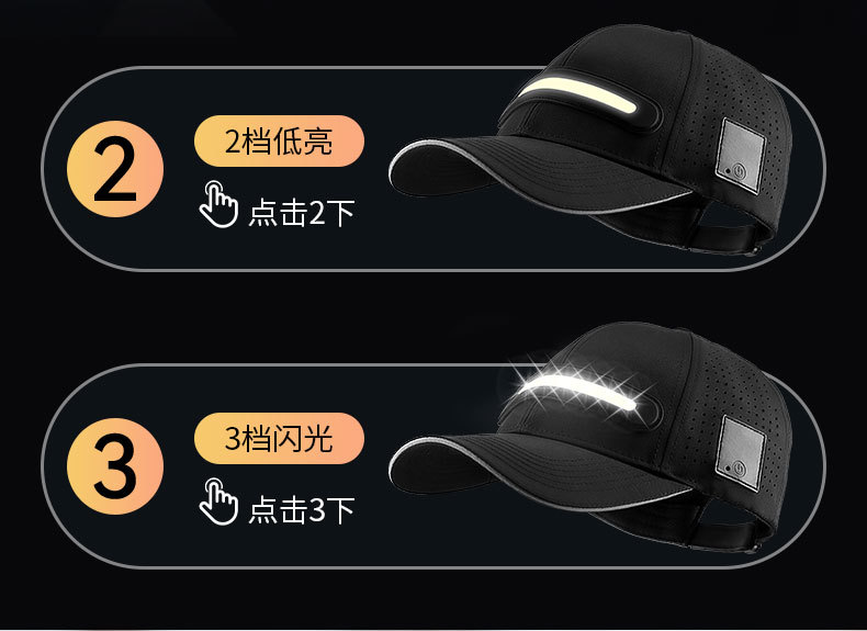 대외 무역 TEMU, TK 플랫폼 LED 라이트 바 빛나는 모자 야외 밤 강한 조명 태양 램프 캡