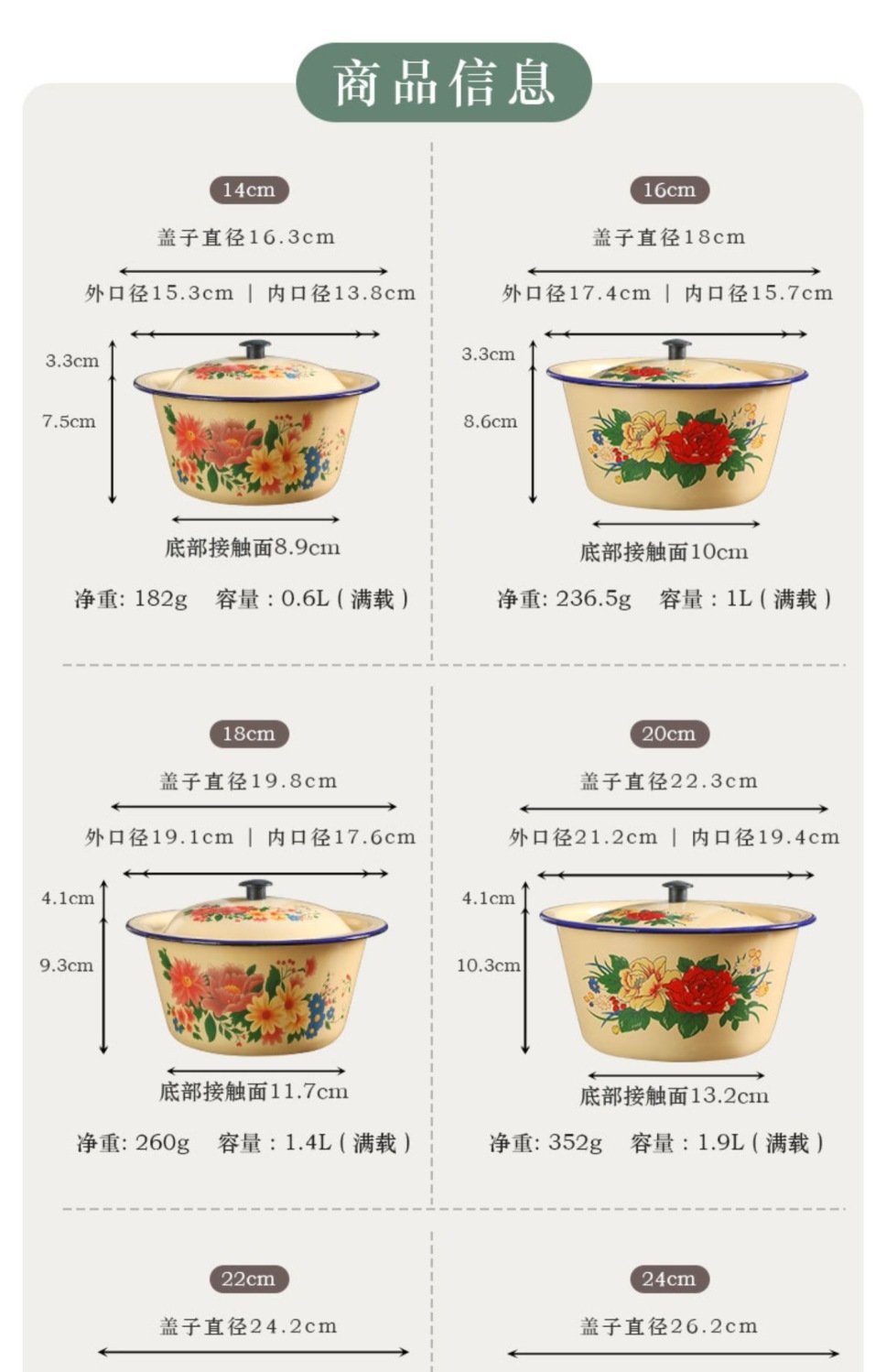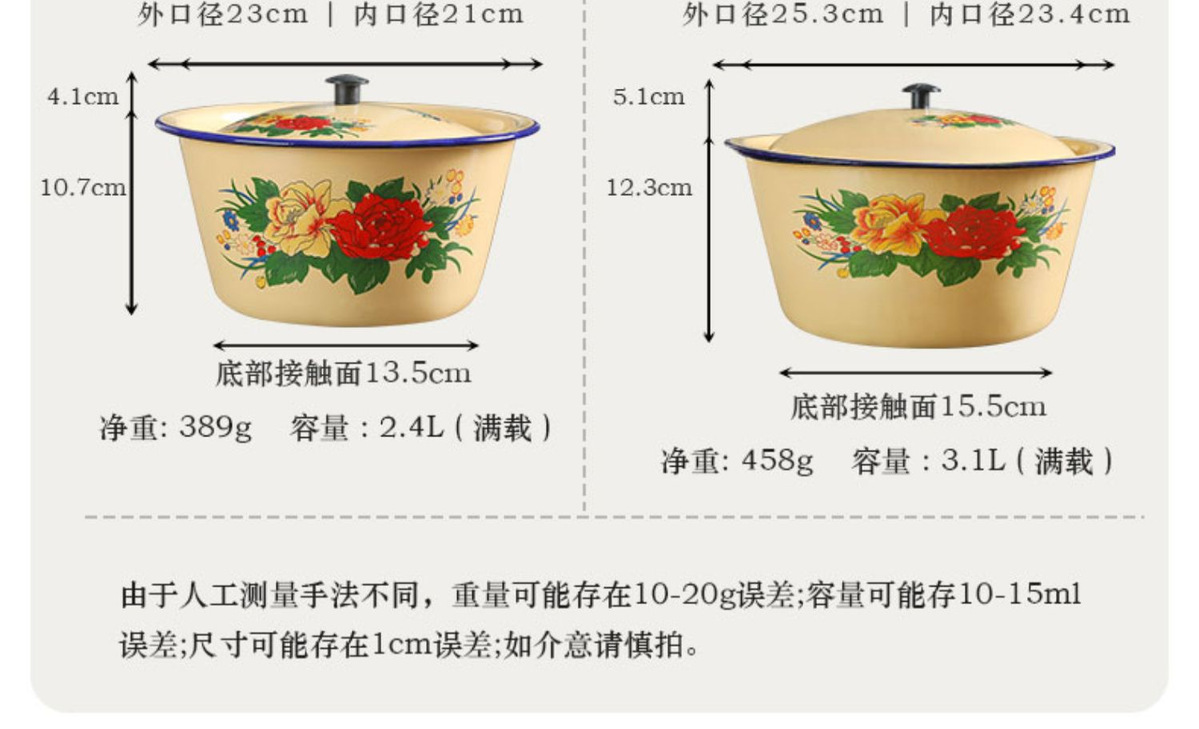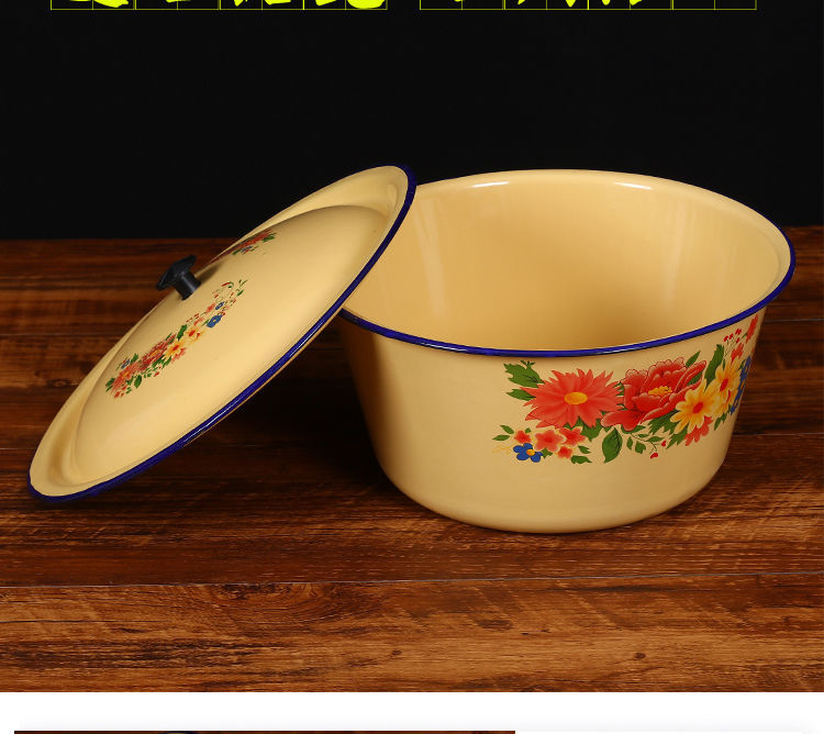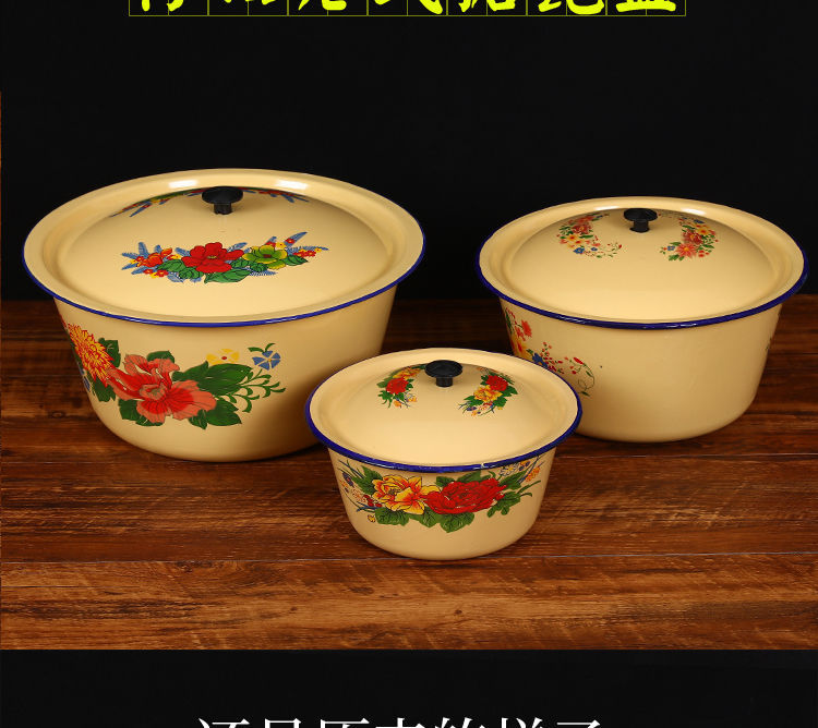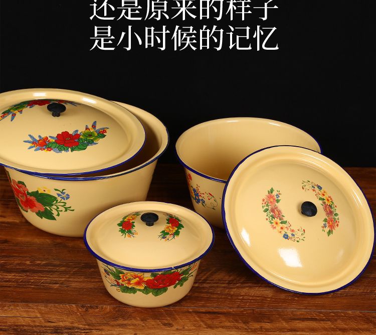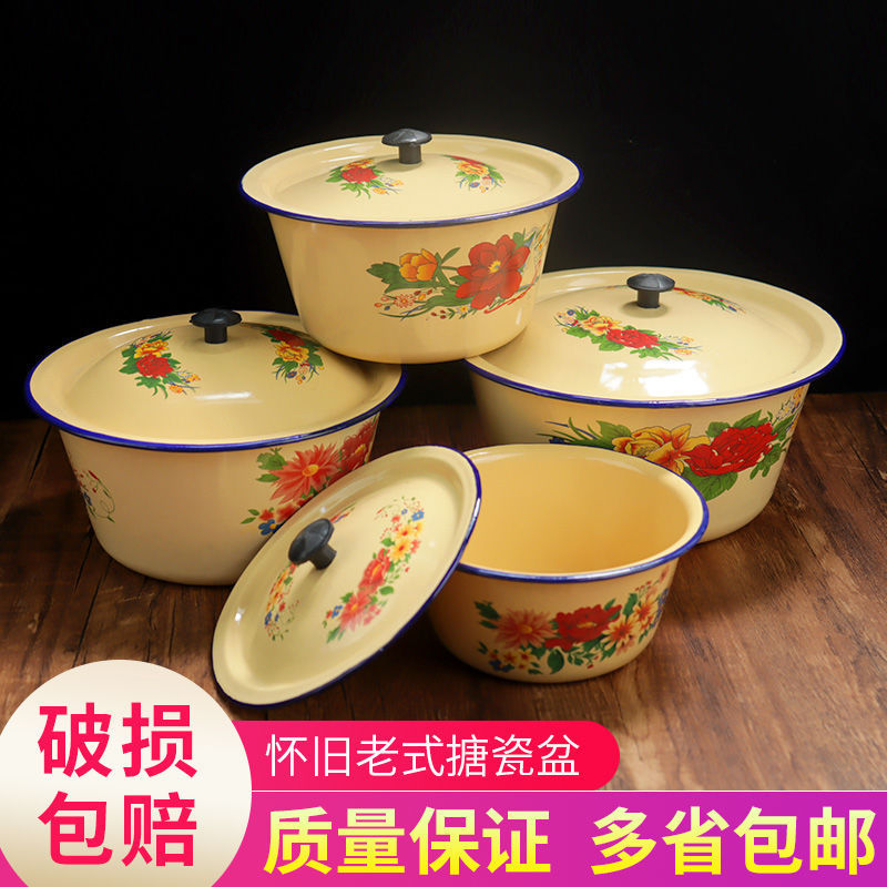 구식 에나멜 분지 뚜껑 수프 냄비 에나멜 만두를 채우는 분지 조미료 그릇 끓는 약 심화 간단한 돼지 기름 병 MU스토어 가기