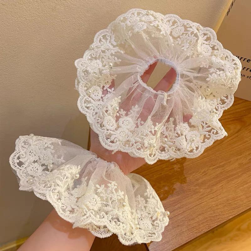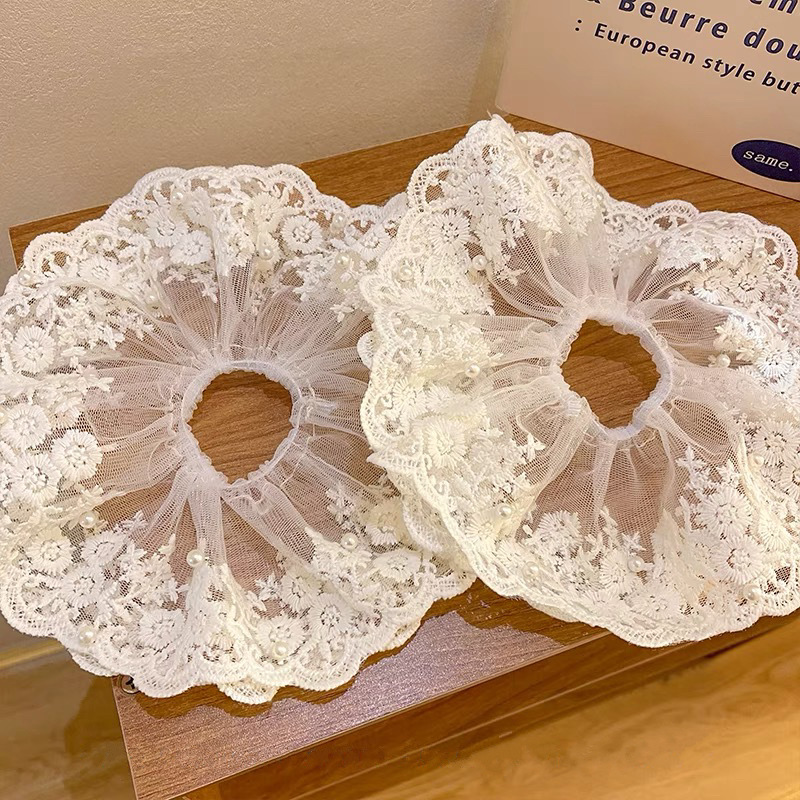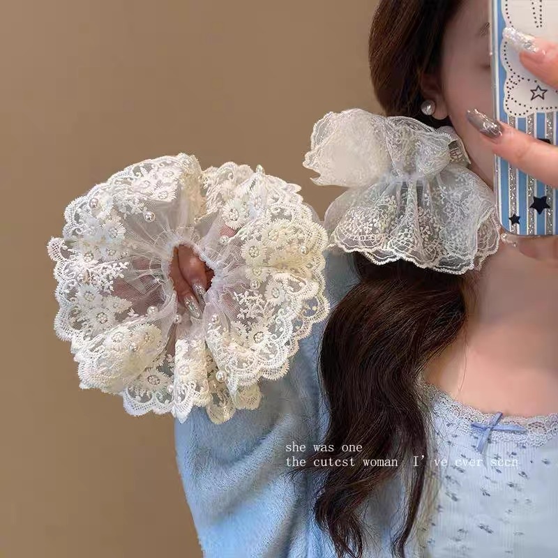 프랑스 레트로 스위트 레이스 대형 직감 헤어 링 아이보리 여성을위한 부드러운 우아한 헤어 타이 폰 테일 헤어 로프 헤어 로프 로프