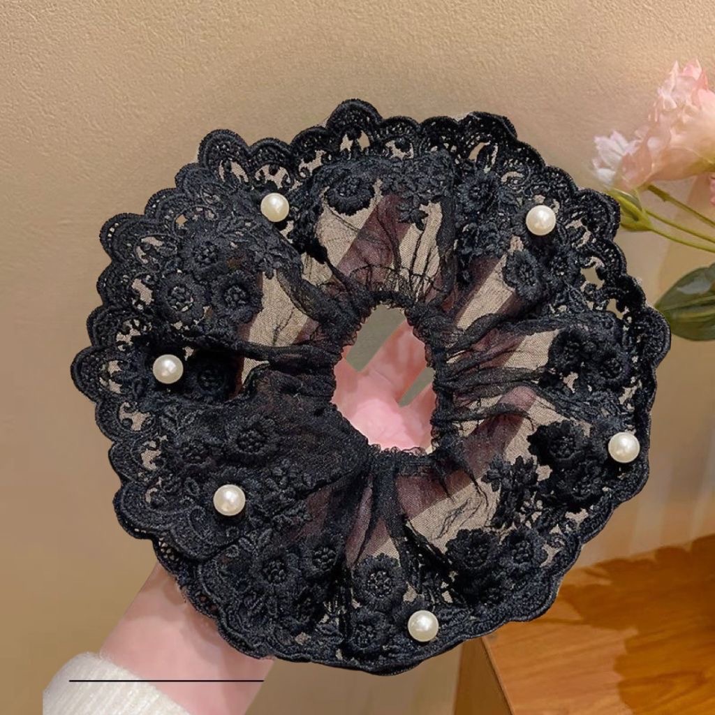 프랑스 레트로 스위트 레이스 대형 직감 헤어 링 아이보리 여성을위한 부드러운 우아한 헤어 타이 폰 테일 헤어 로프 헤어 로프 로프스토어 가기