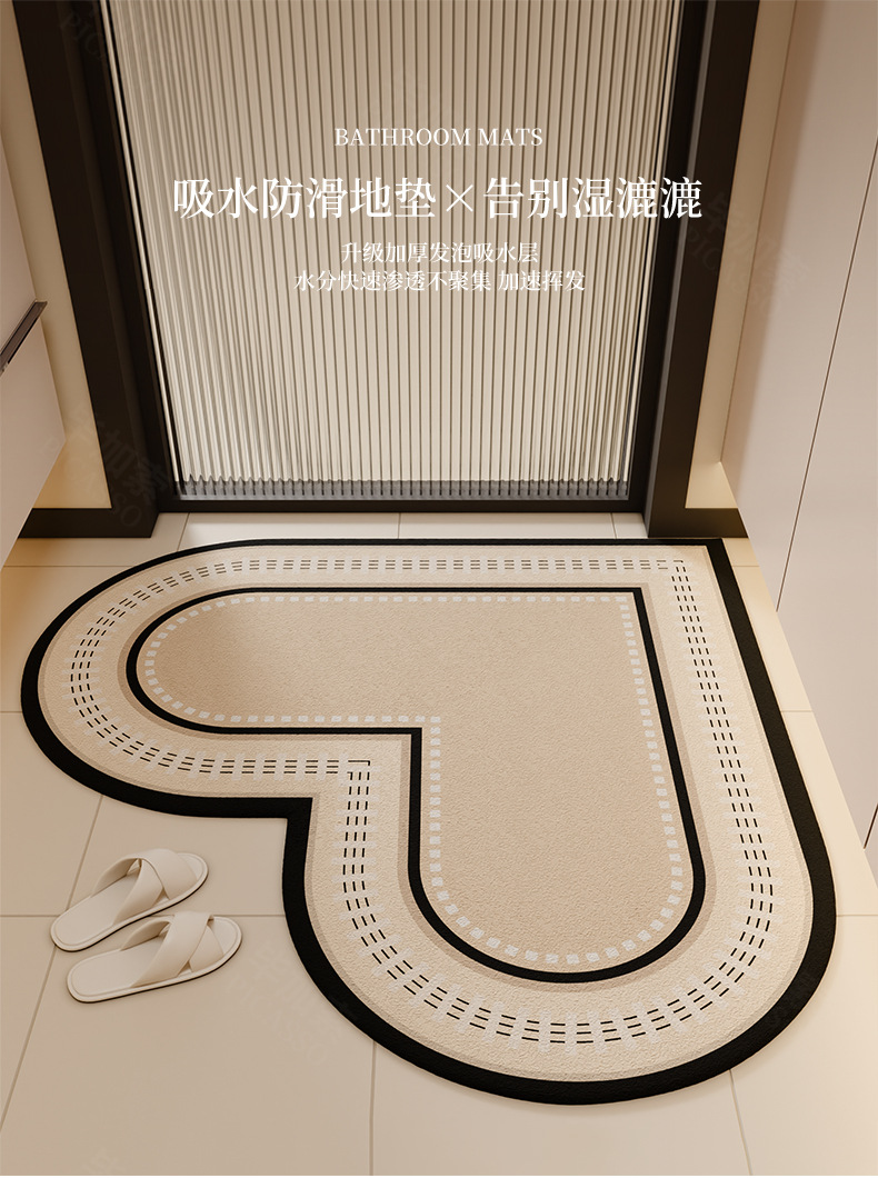 욕실 도어 매트 욕실 하트 모양의 코너 미끄럼 방지 풋 매트 도어 diatom 진흙 흡수 카펫 매트에 들어가기위한스토어 가기