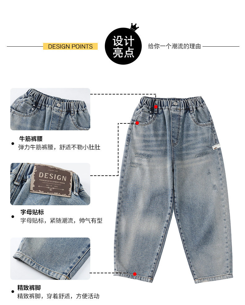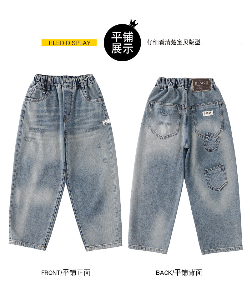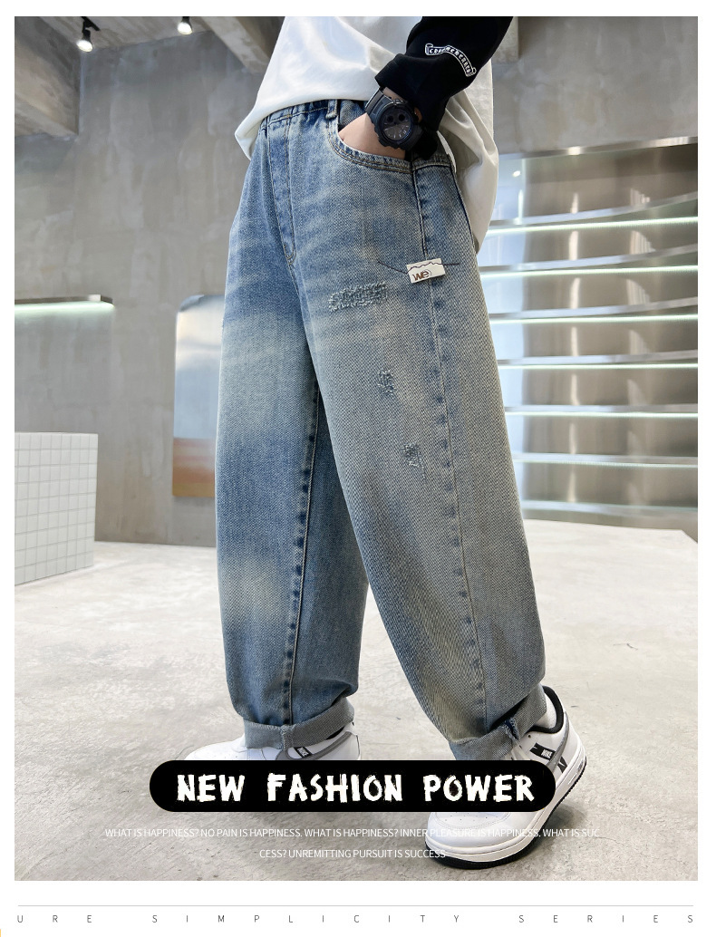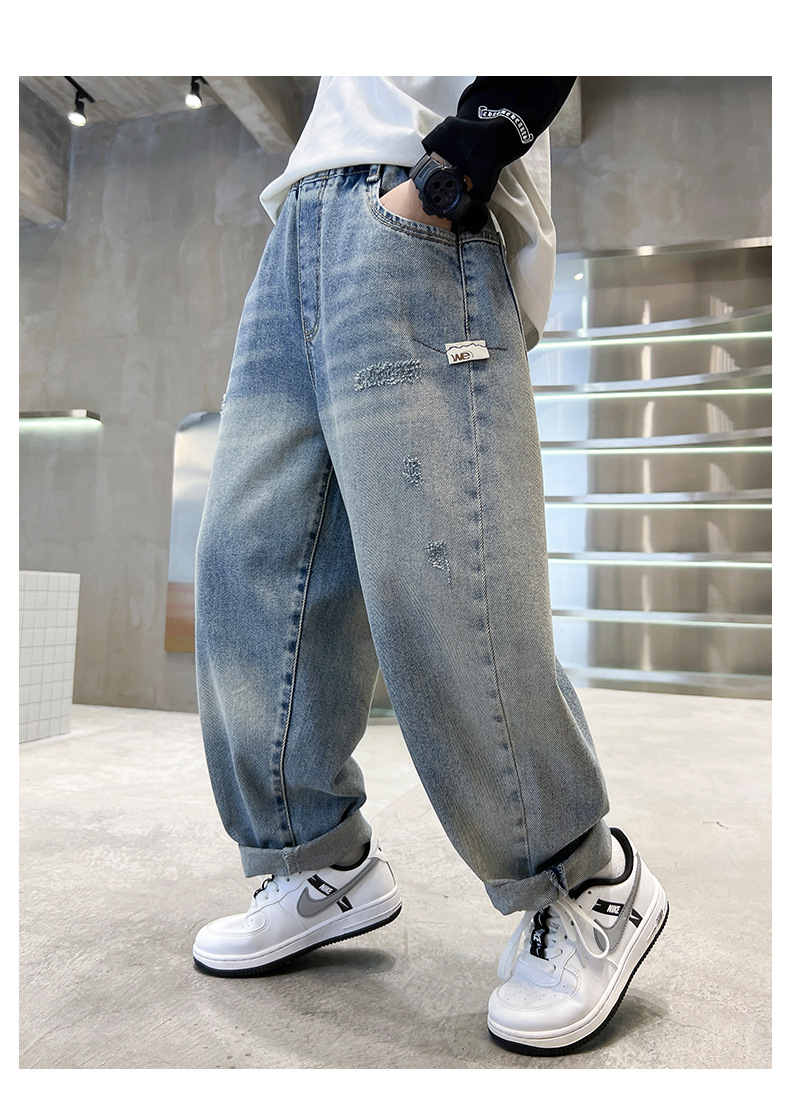 소년의 봄 데님 바지 2025 새로운 스타일 봄 느슨한 소년의 봄과 가을 스트레이트 바지스토어 가기