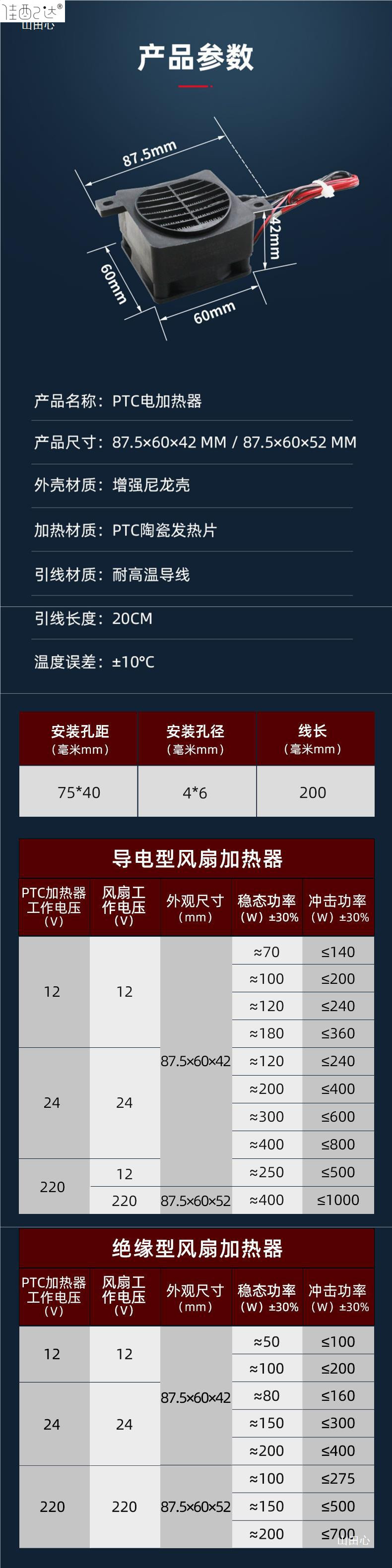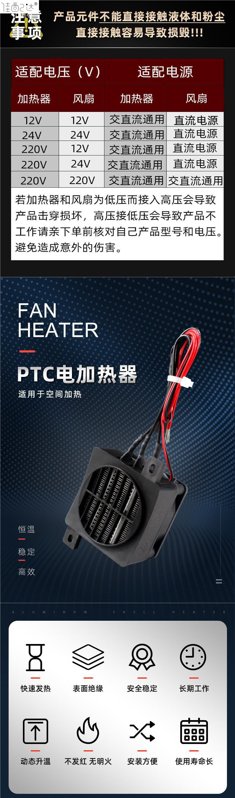 팬 세라믹 PTC 일정한 온도 공기 전기 히터 가열 시트 본체와 공장 24V150W300W스토어 가기