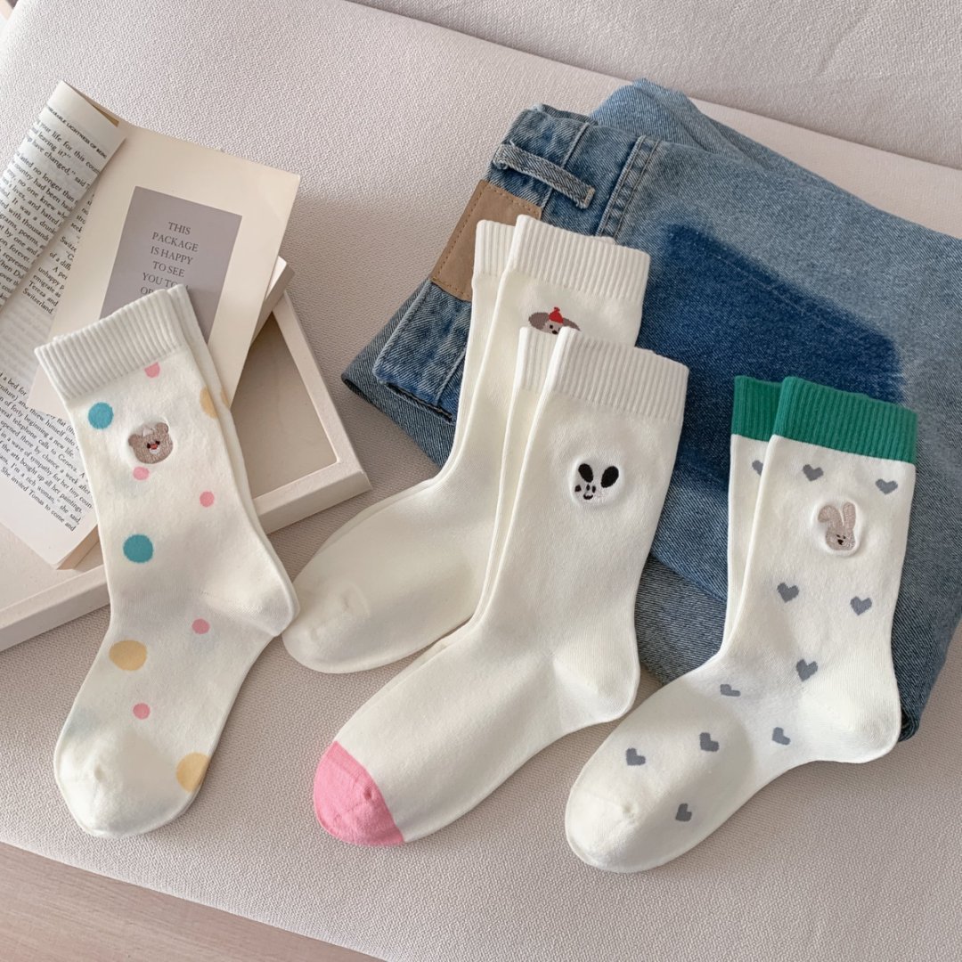 2025春夏新品女士中筒袜子清新简约糖果小狗ins潮女袜薄棉袜