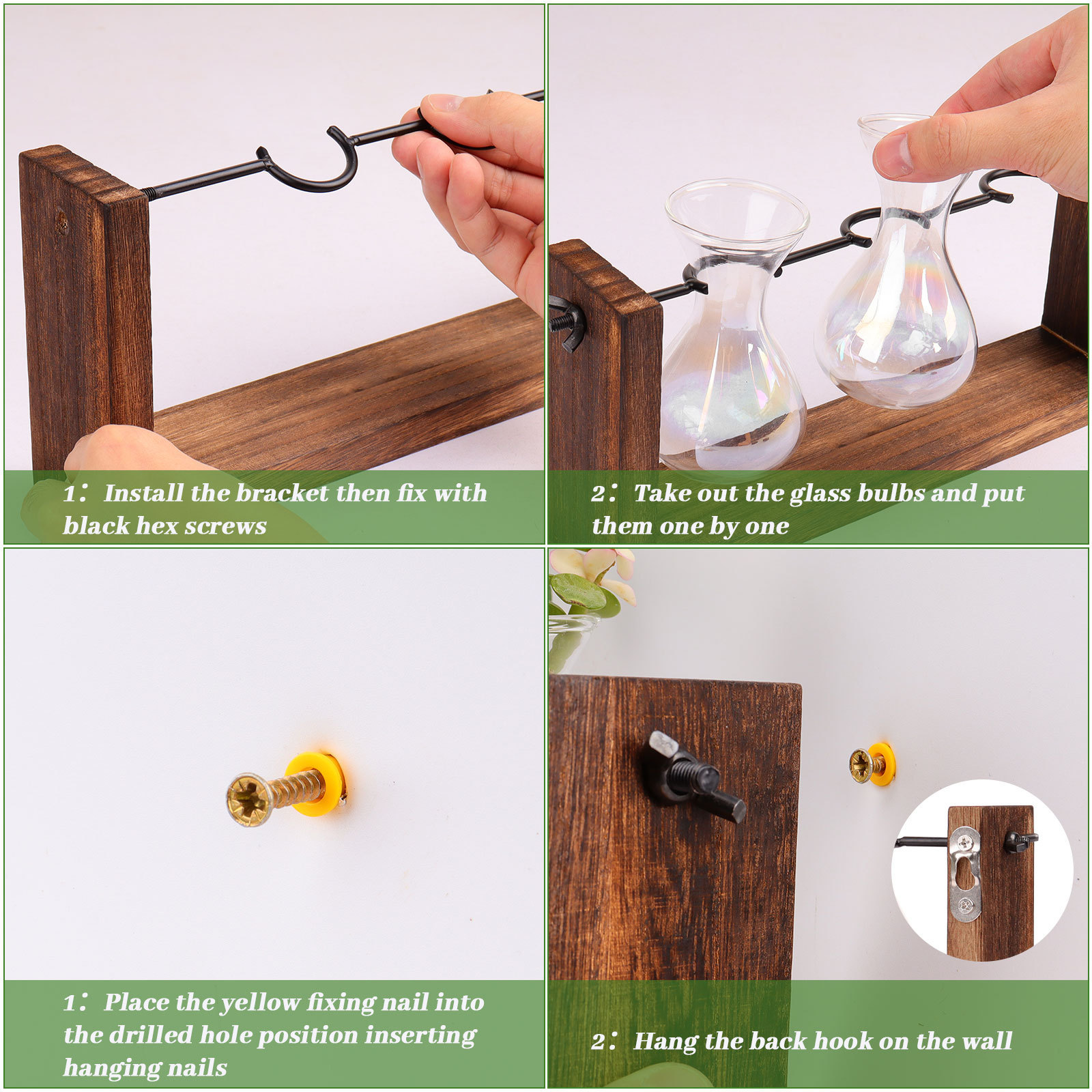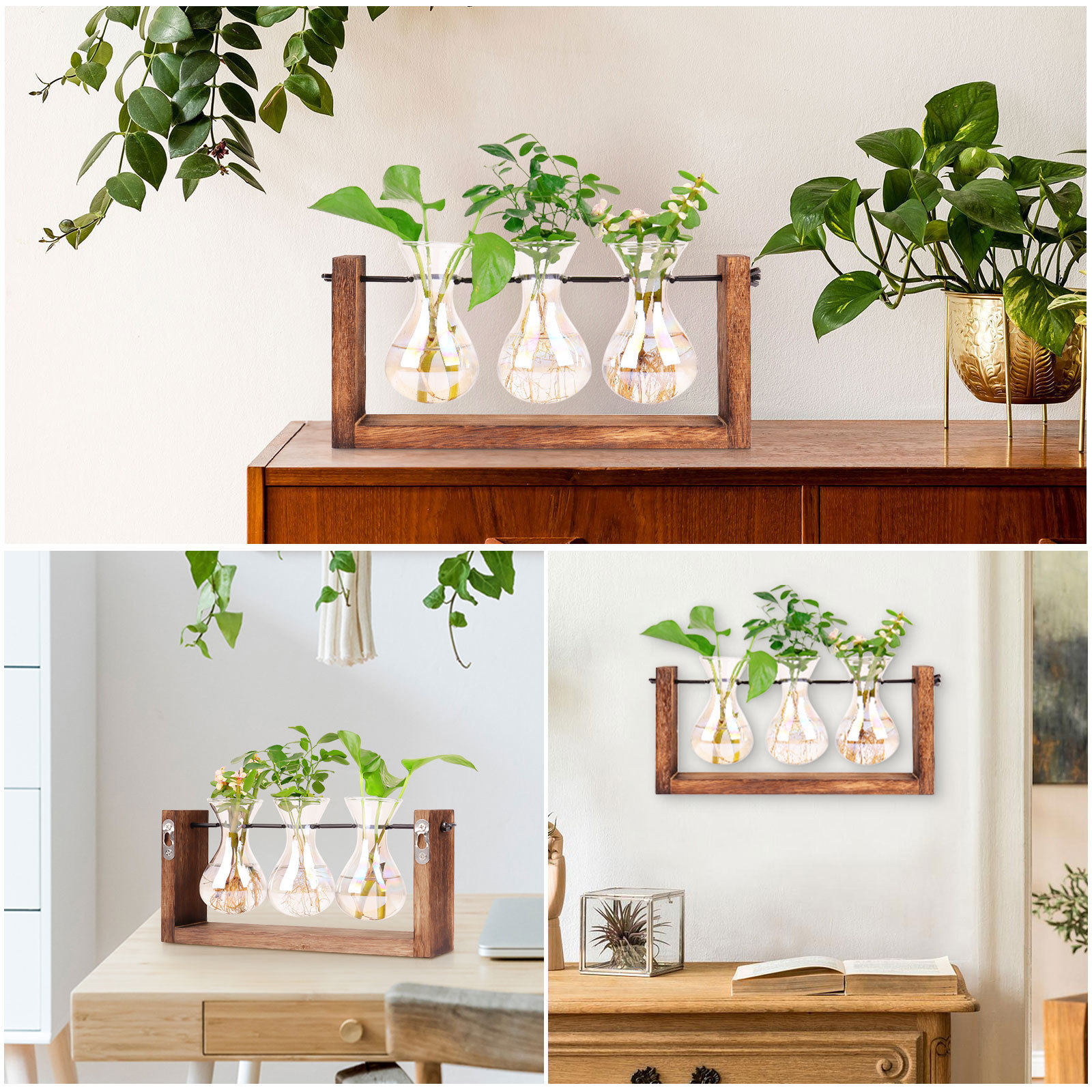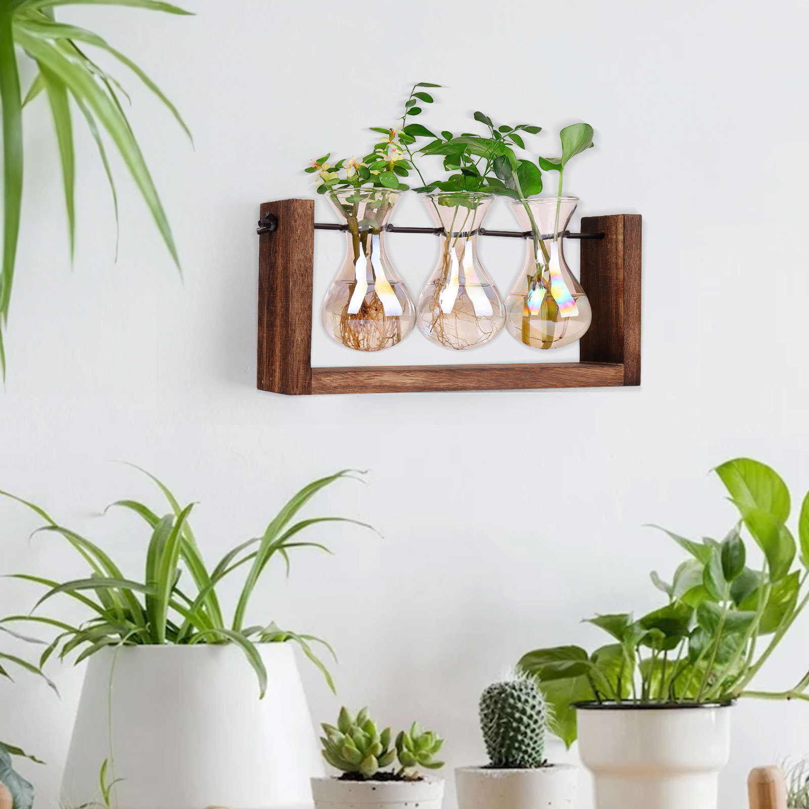 크리 에이 티브 무지개 유리 꽃병 매달려 나무 프레임 수경 꽃병 거실 벽 홈 인테리어스토어 가기