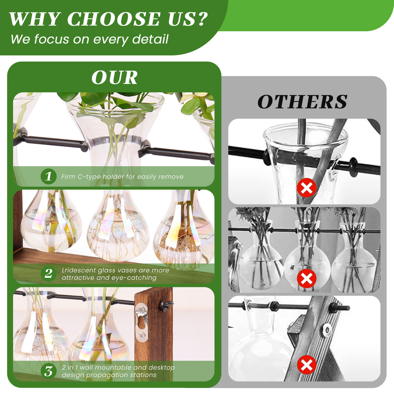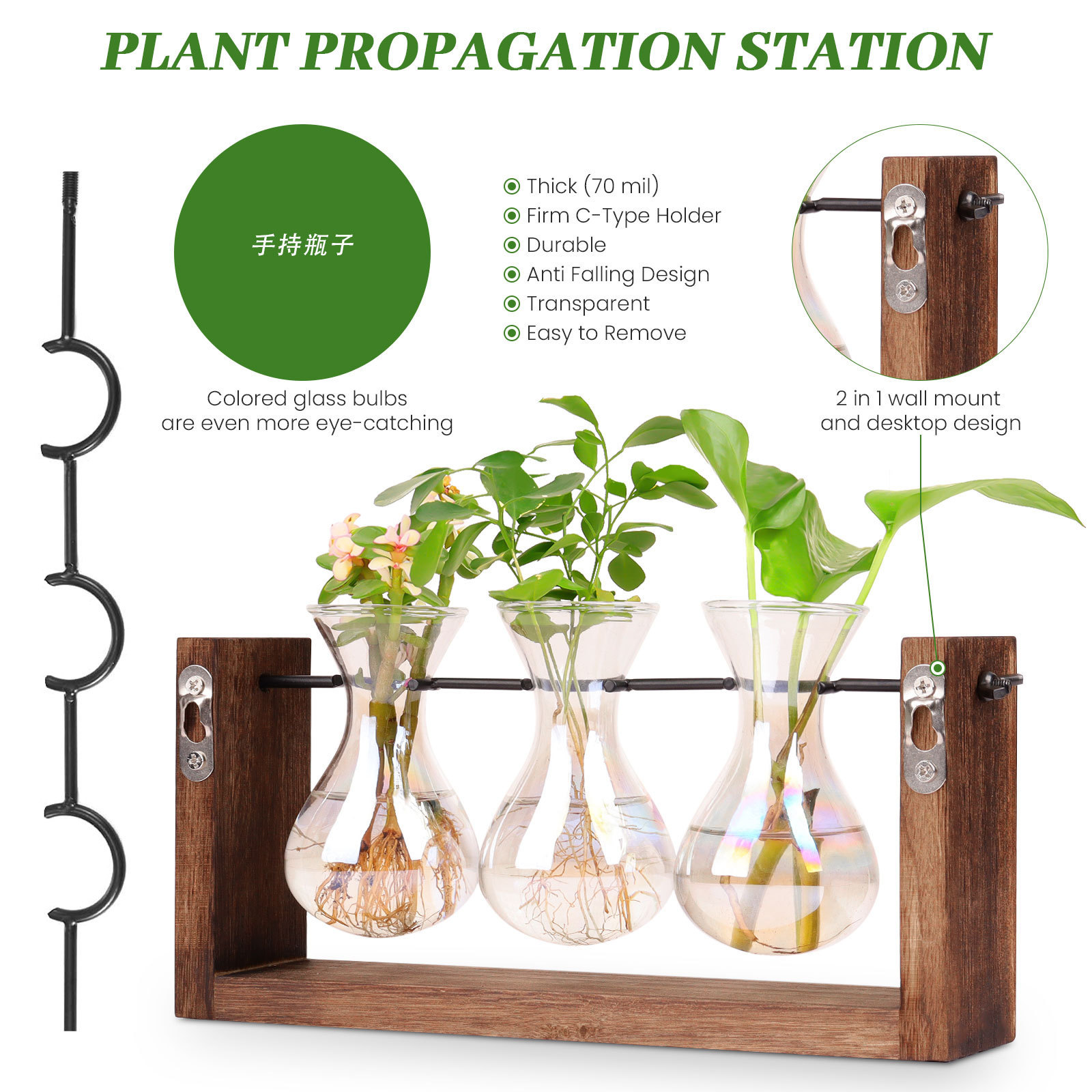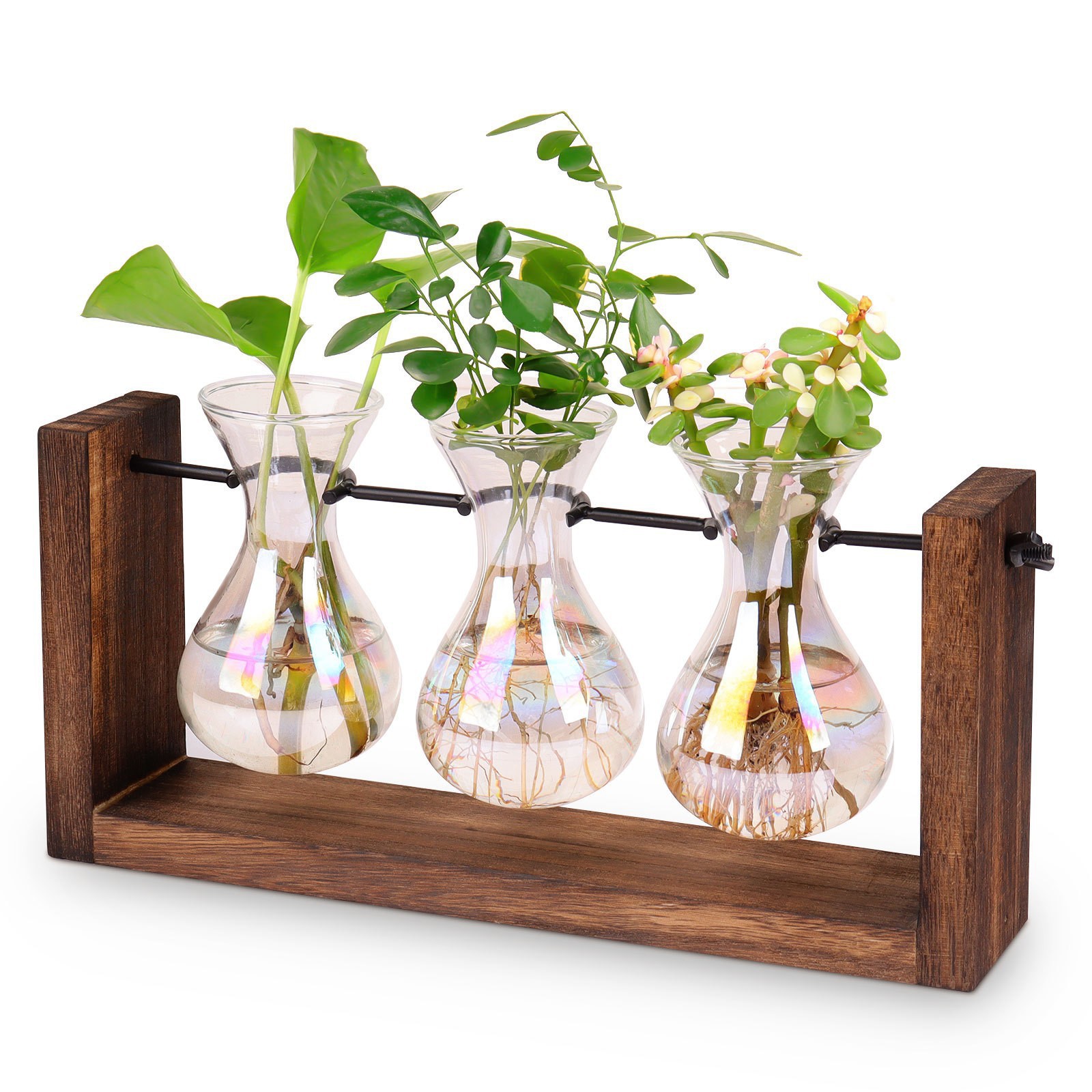 크리 에이 티브 무지개 유리 꽃병 매달려 나무 프레임 수경 꽃병 거실 벽 홈 인테리어