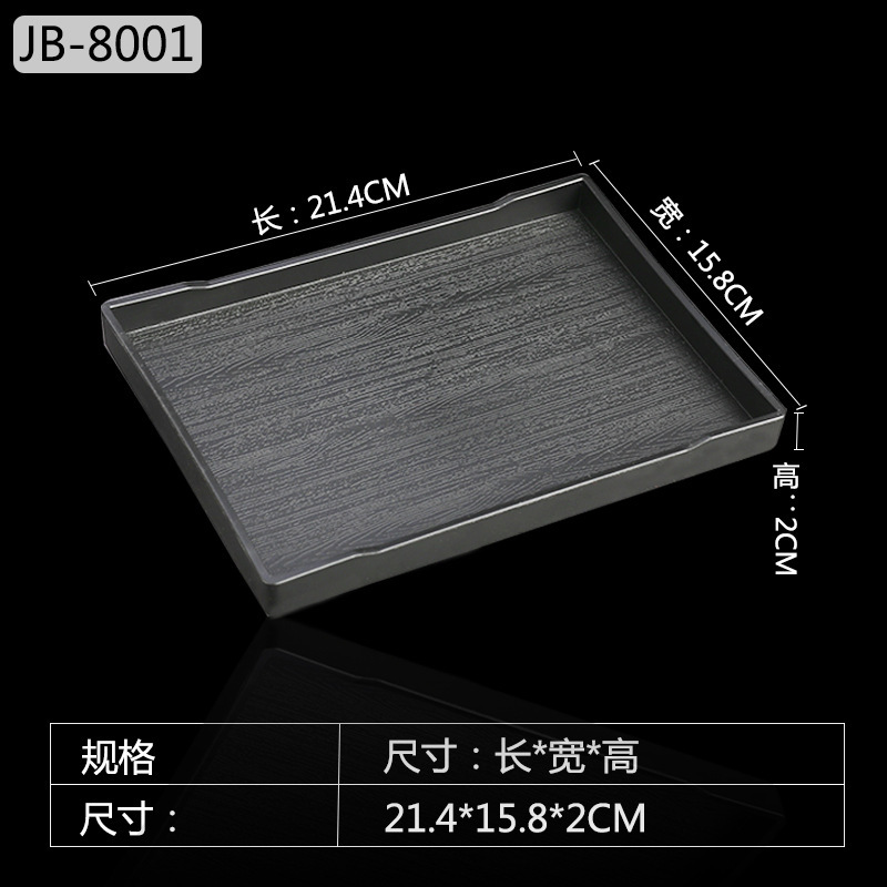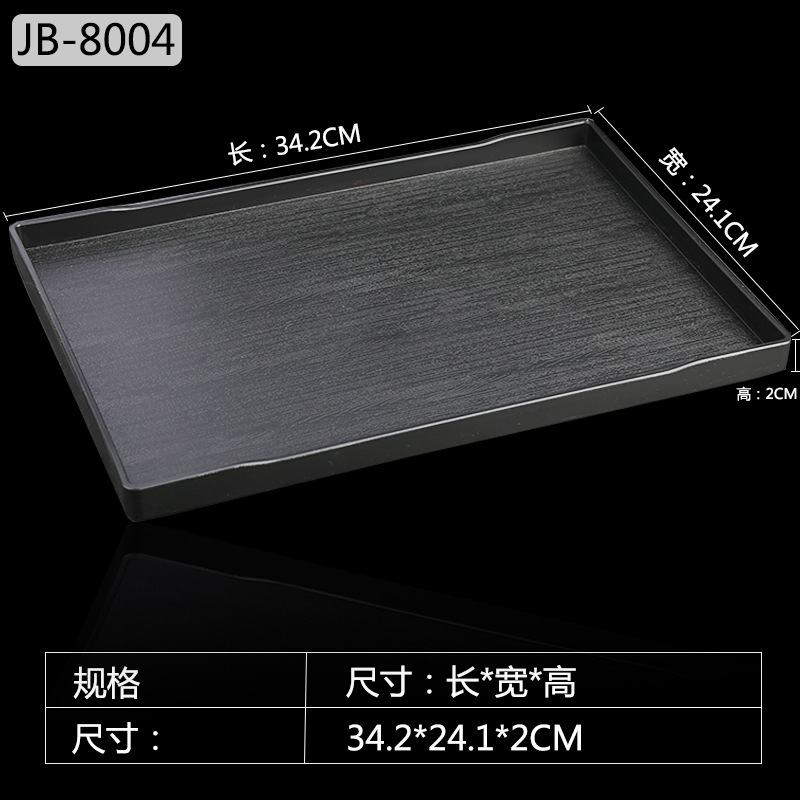 직사각형 플라스틱 플레이트 호텔 방 나뭇결 미끄럼 방지 티 컵 블랙 화이트 트레이 멜라민 상업 도매스토어 가기