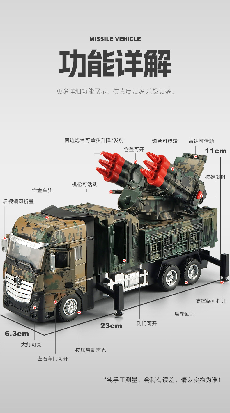 대형 합금 미사일 자동차 장난감 로켓 발사기 미사일 발사기 자동차 모델 어린이 캐논볼 자동차 소년 대포 탱크