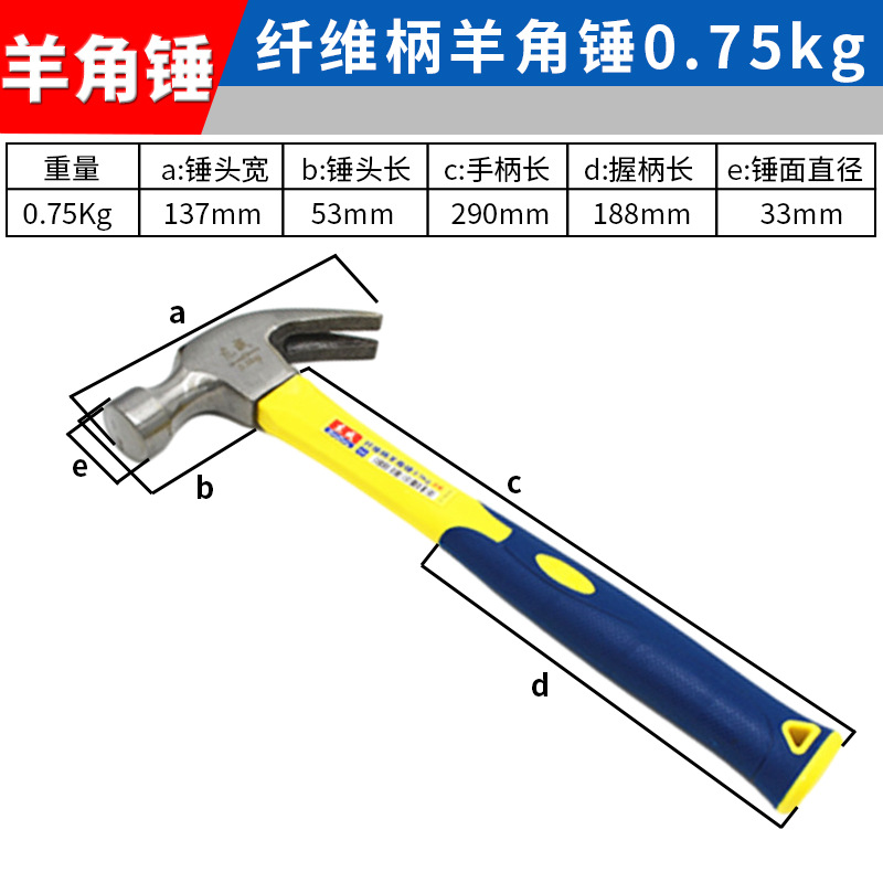 • 0.75kg 섬유 손잡이 클로 해머