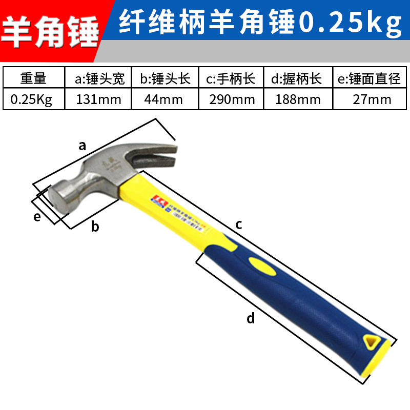 • 0.25kg 섬유 손잡이 클로 해머