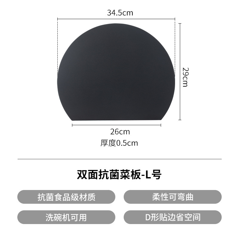 TPU 반원형 도마 D형 식품 등급 곰팡이 방지 및 항균 양면 사용 가능 내열성 및 식기세척기 사용 가능 주방 도마