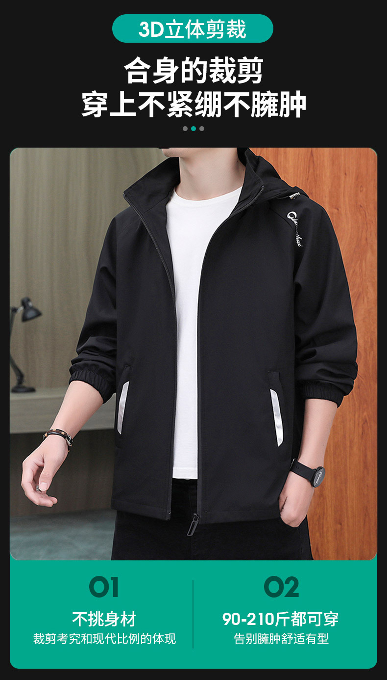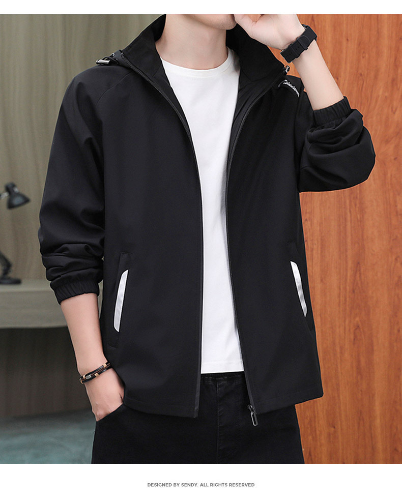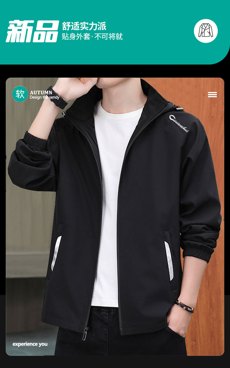 봄 2025 새로운 도착 캐주얼 후드 재킷 남자의 분리 가능한 모자 야외 코트 재킷 싱글 옷스토어 가기