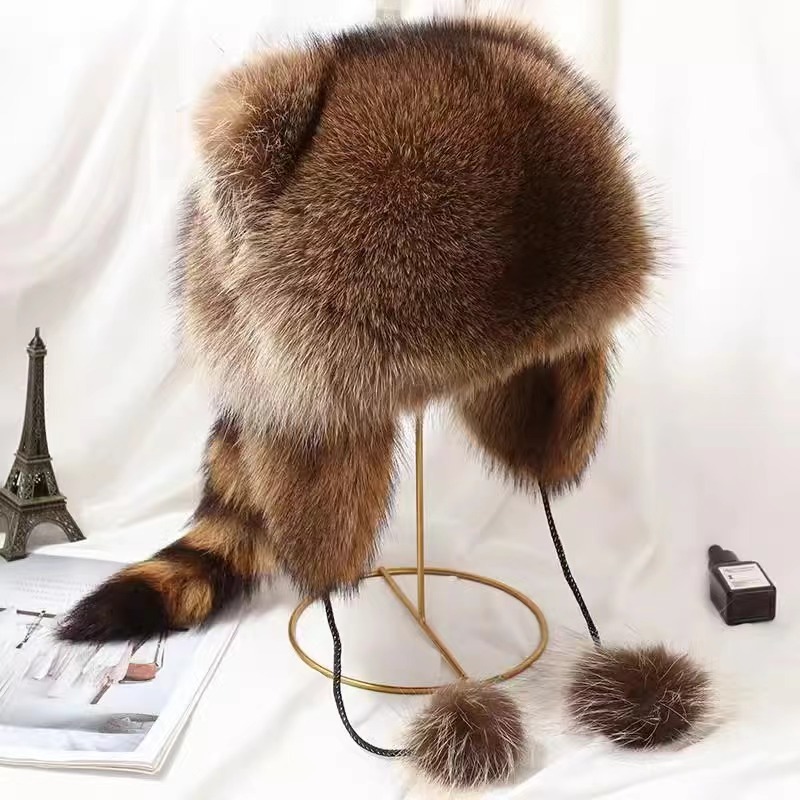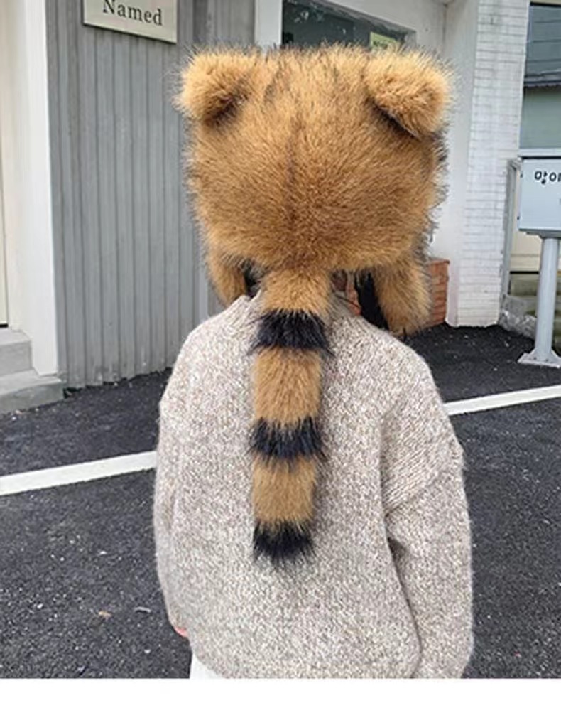 소년 소녀를위한 작은 너구리 오버로드 모자 꼬리 모자 성인 겨울 모방 미국 너구리 가짜 여우 모피 모피 토끼 귀스토어 가기