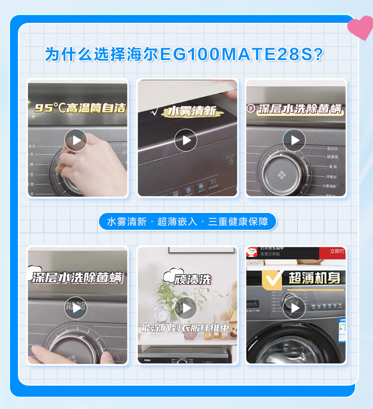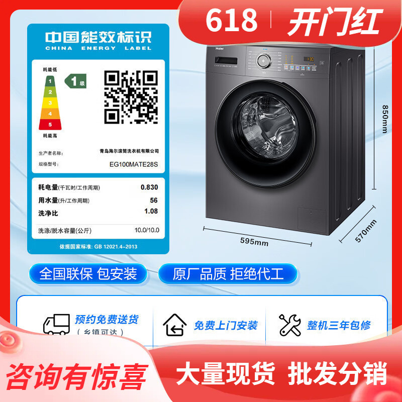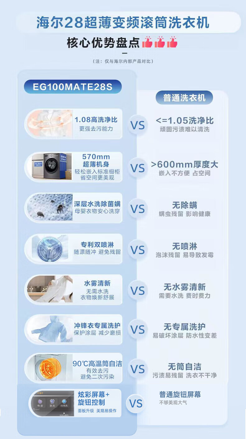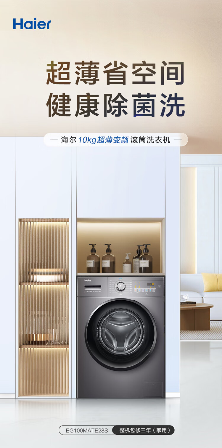 하이얼 드럼 세탁기 10kg 자동 살균 용출 울트라 얇은 용출 EG100MATE28S