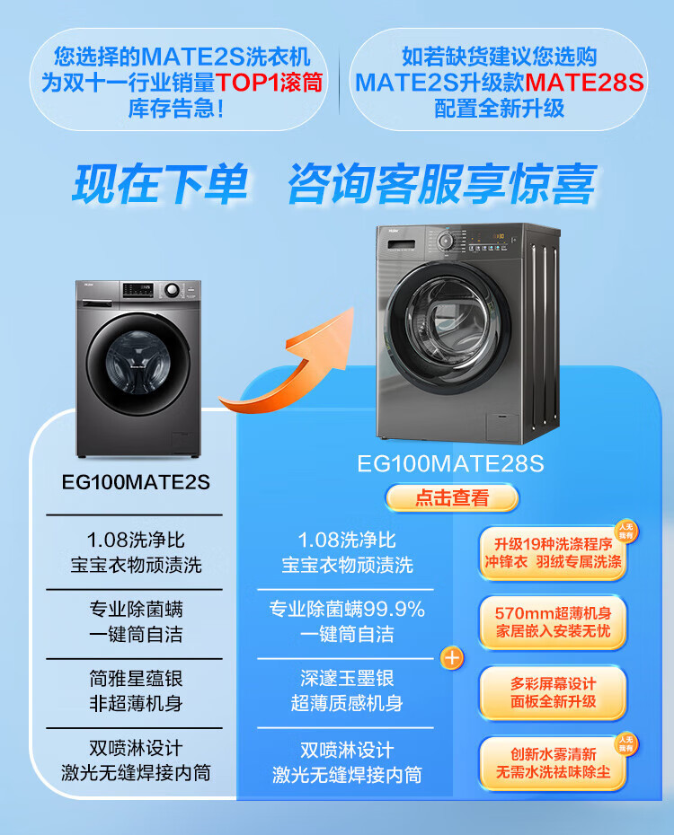 하이얼 드럼 세탁기 10kg 자동 살균 용출 울트라 얇은 용출 EG100MATE28S스토어 가기