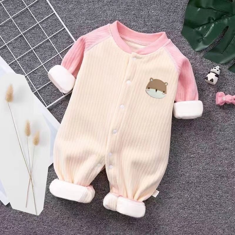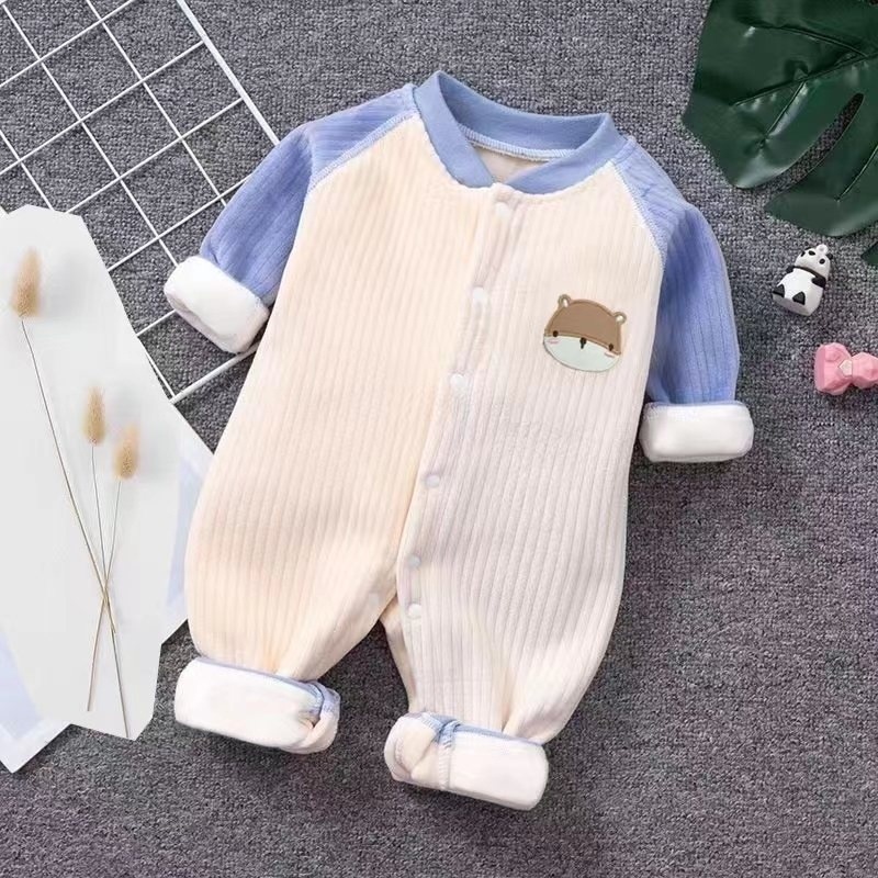 아기 점프 수트 가을과 겨울 기모 소년 소녀 아기 귀여운 옷 신생아 따뜻한 옷 외출을 위해 옷을 등반스토어 가기