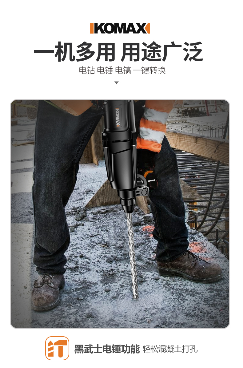 Komax 가벼운 전기 해머 전기 선택 전기 드릴 3 목적 다기능 충격 드릴 고출력 콘크리트 산업 등급 전기 드릴