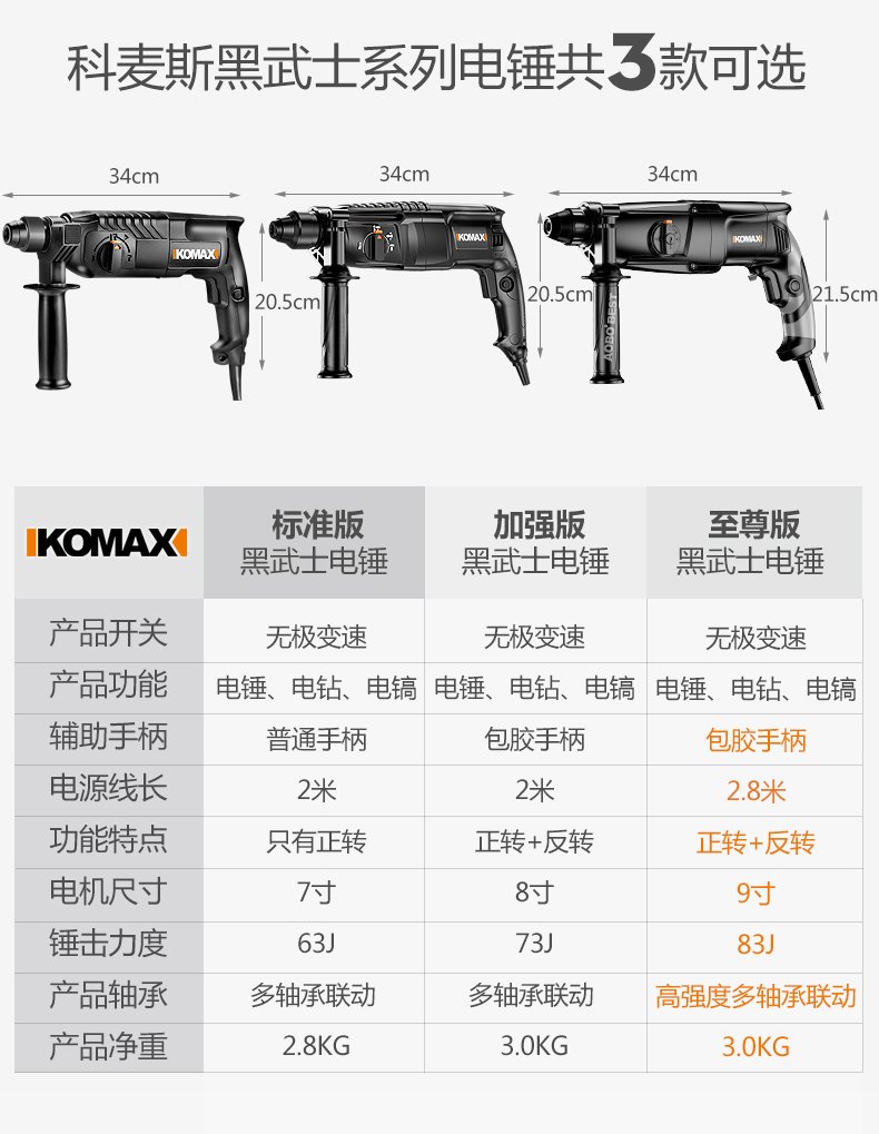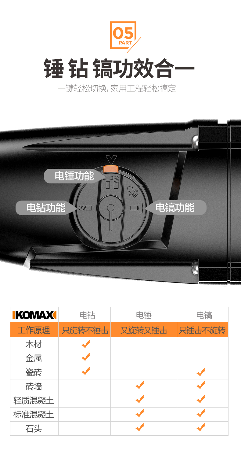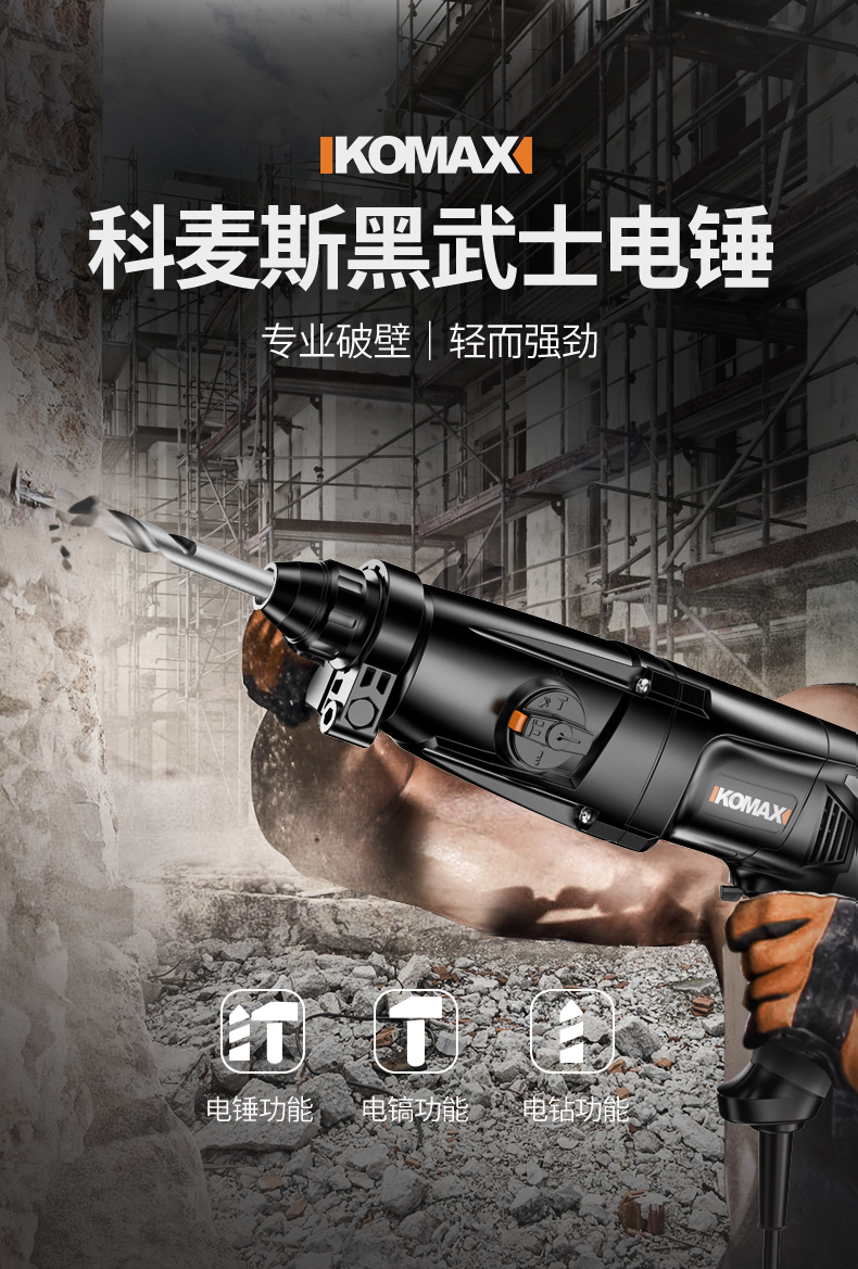 Komax 가벼운 전기 해머 전기 선택 전기 드릴 3 목적 다기능 충격 드릴 고출력 콘크리트 산업 등급 전기 드릴스토어 가기