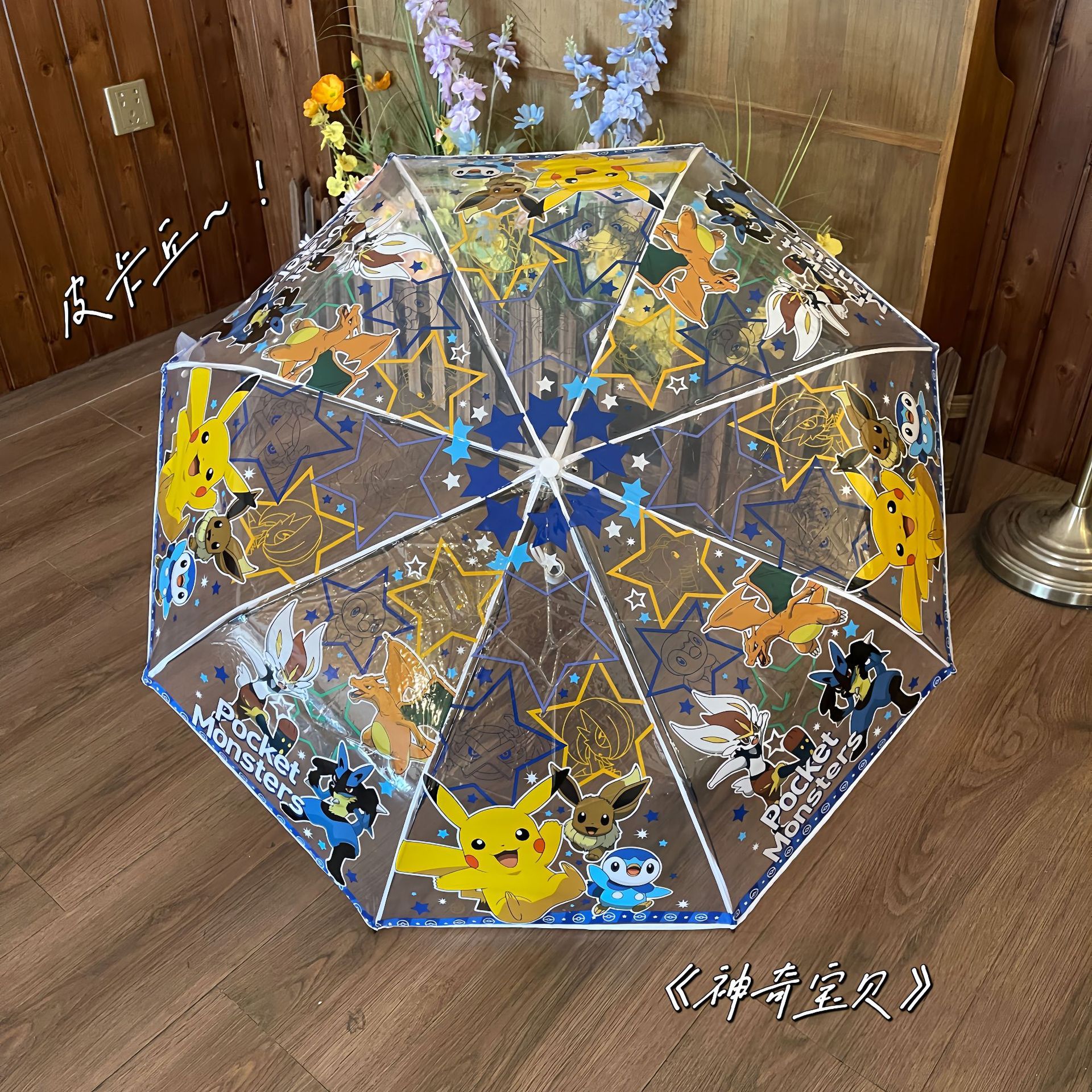 Baokemeng 어린이 우산 투명 긴 손잡이 여자 초등학생 자동 귀여운 높은 가치 만화 피카추 우산