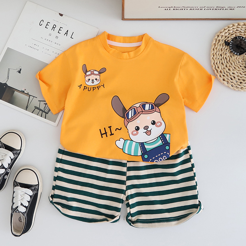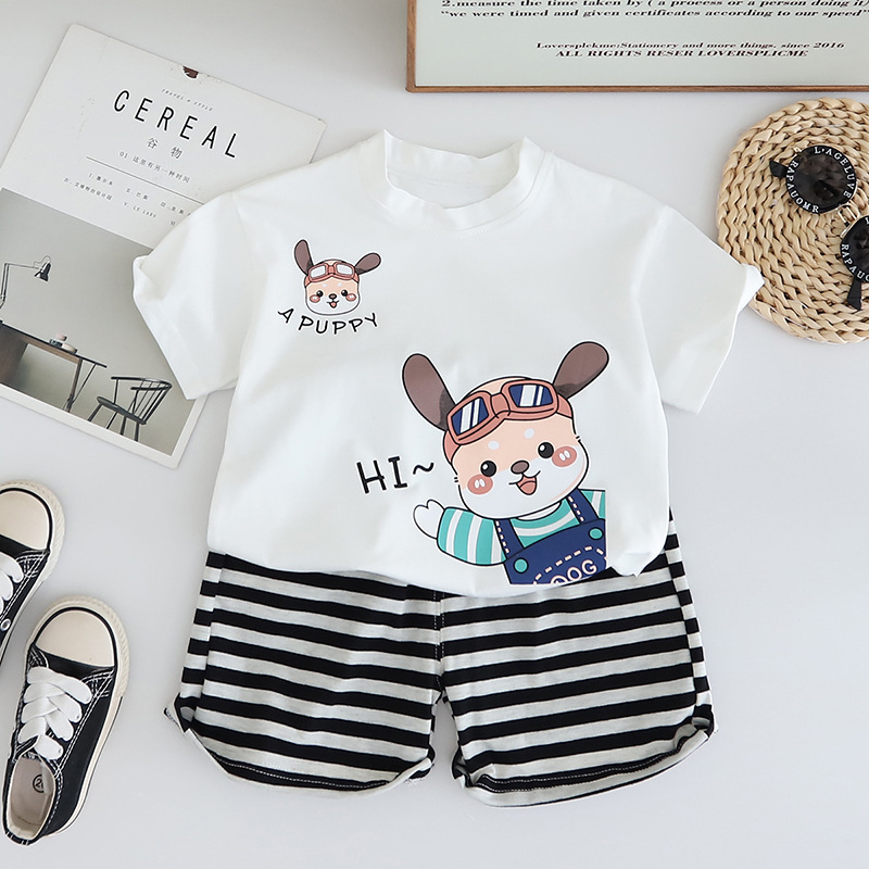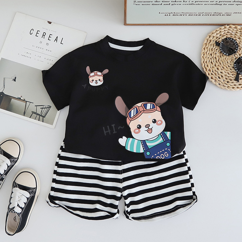 어린이 의류 도매 세트 인쇄 토끼 반팔 티셔츠 투피스 소년 여름 패션 캐주얼 어린이 세트
