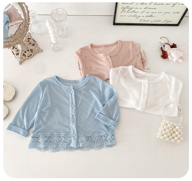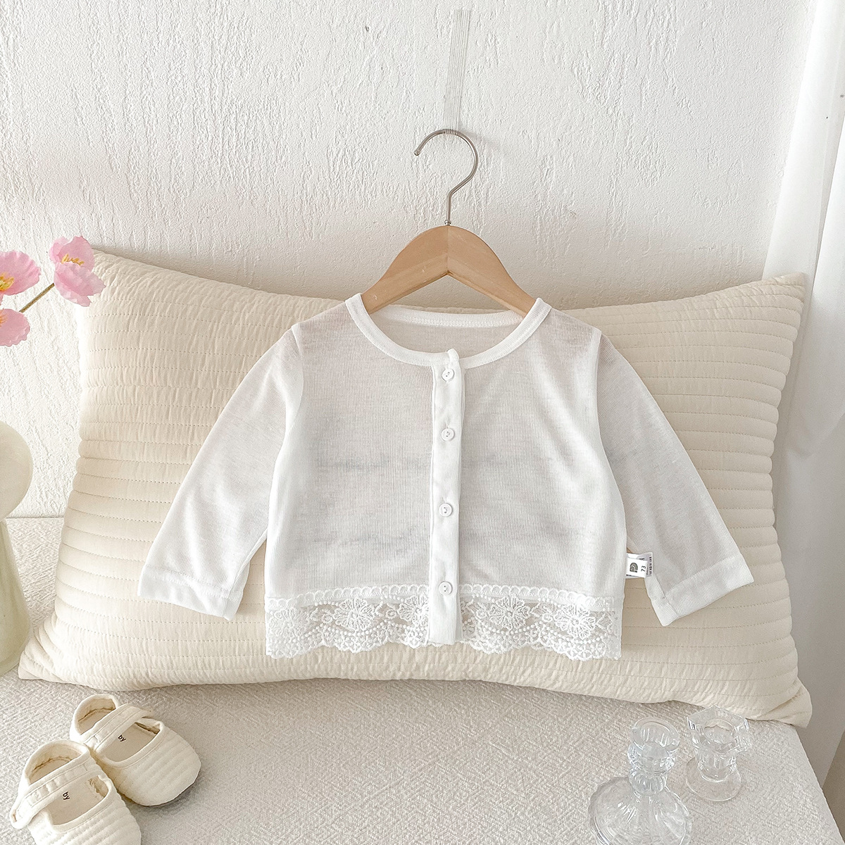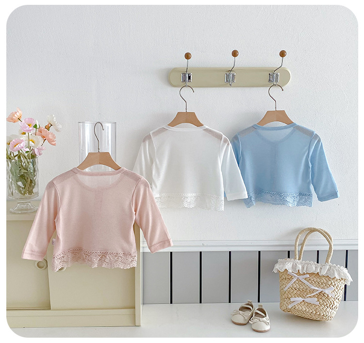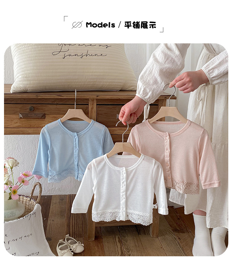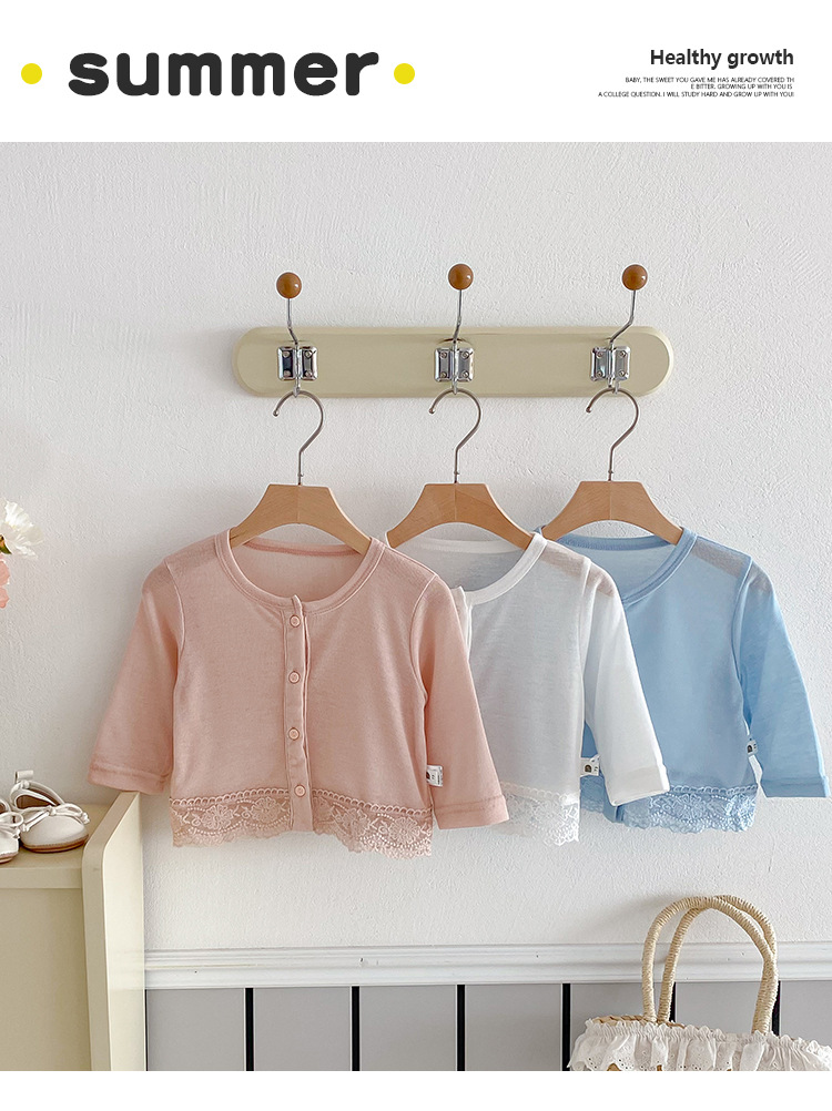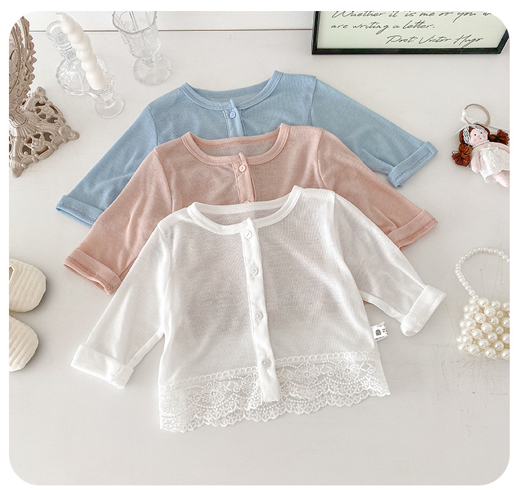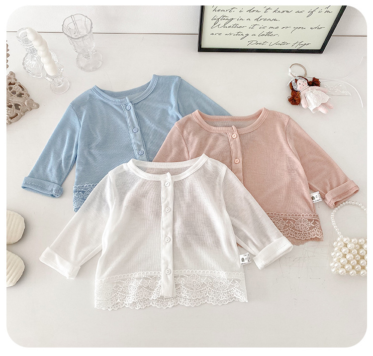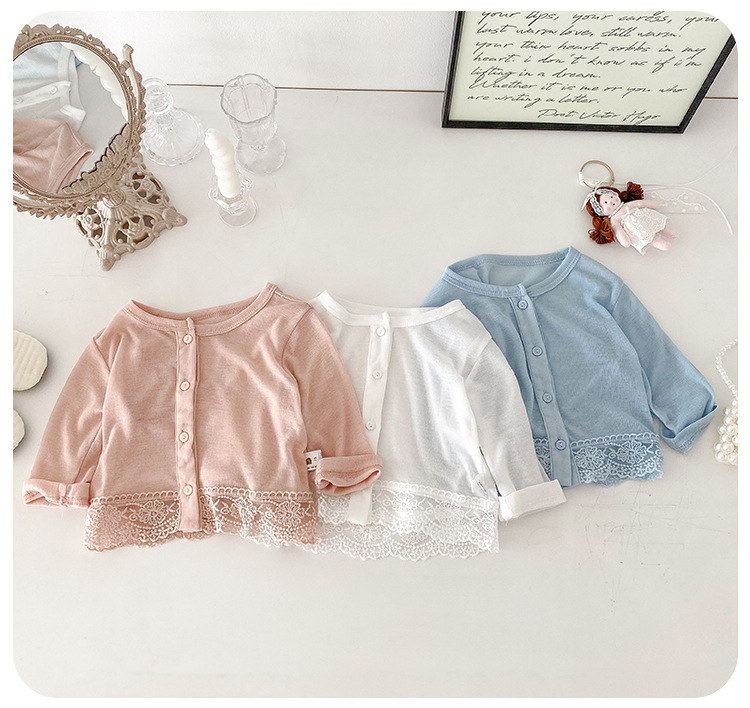 유아 카디건 여름 새 스타일 아기 소녀 밑단 레이스 얇은 코트 에어컨 셔츠 어린 소녀 겉옷