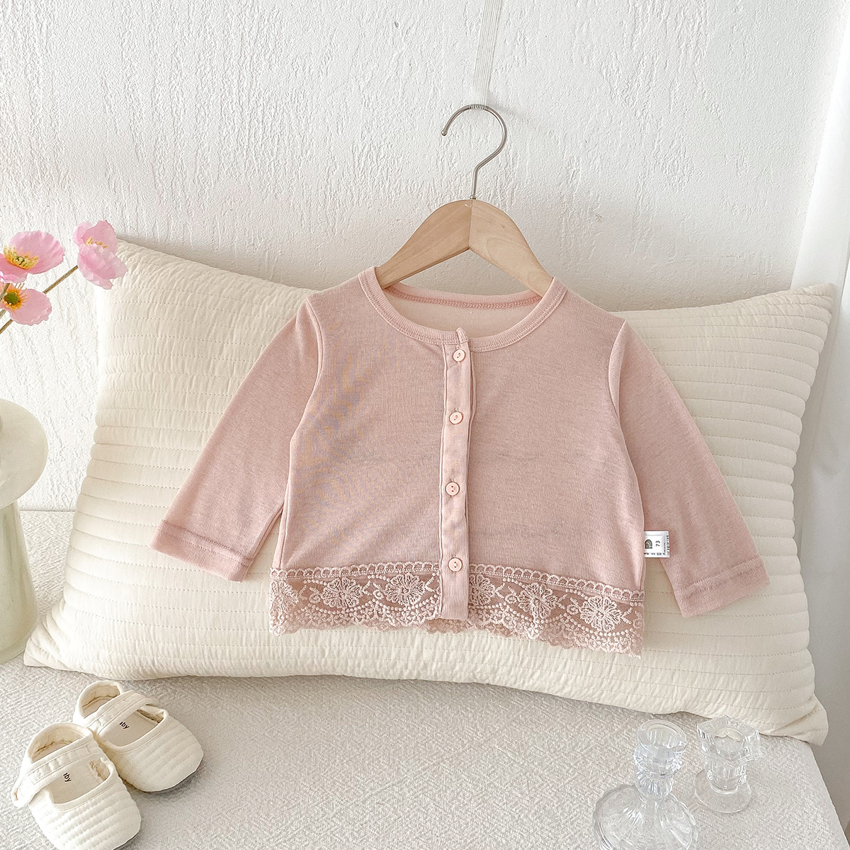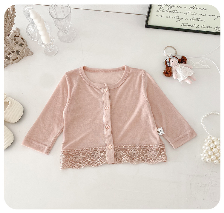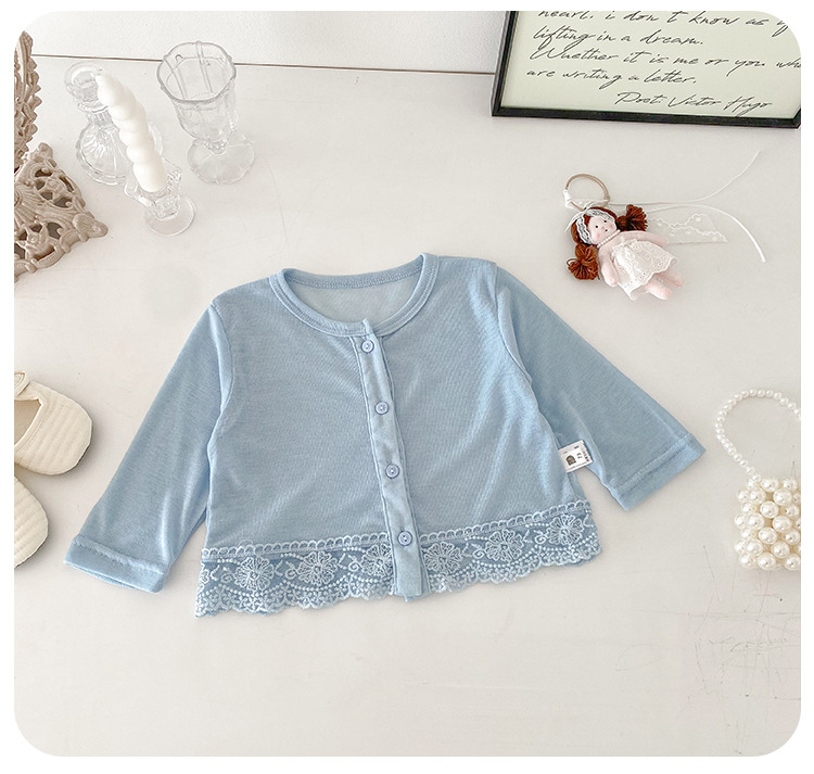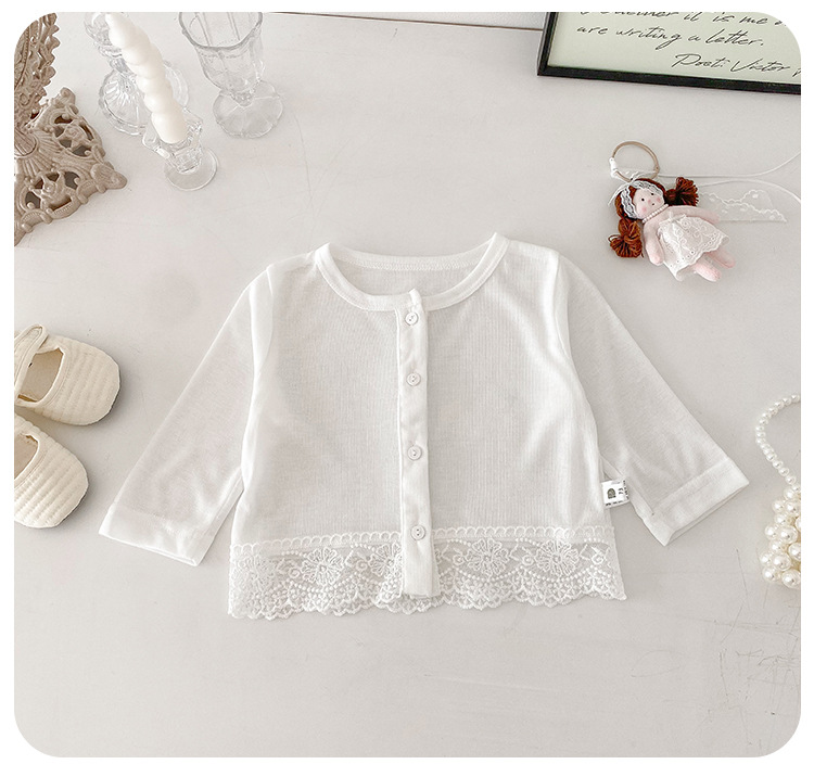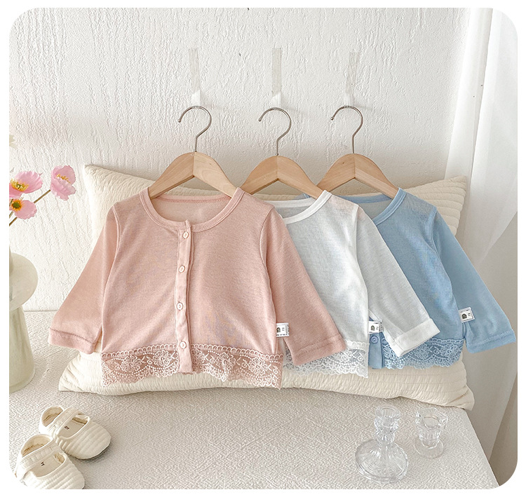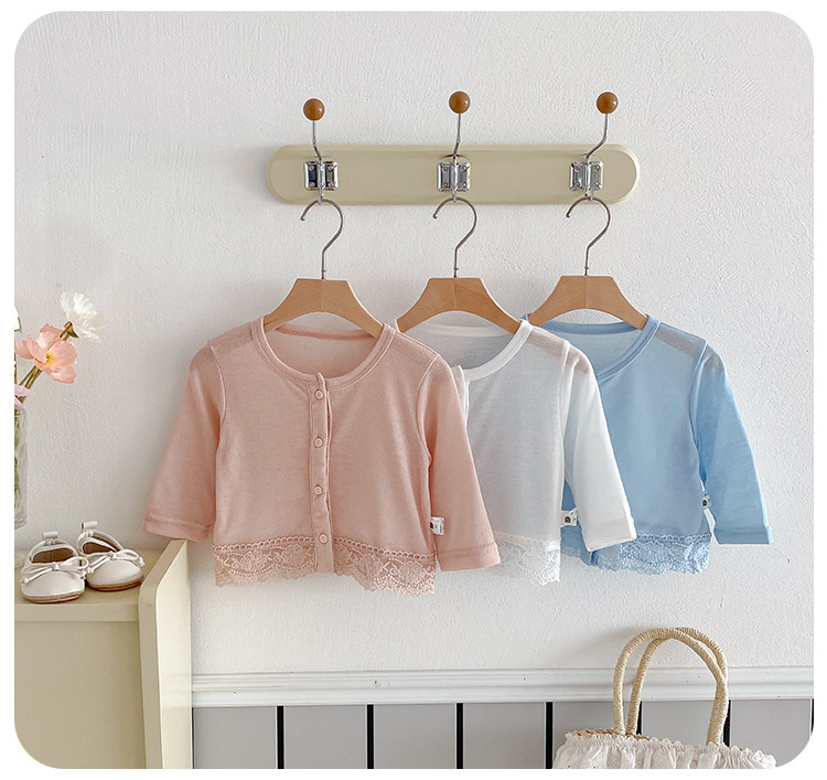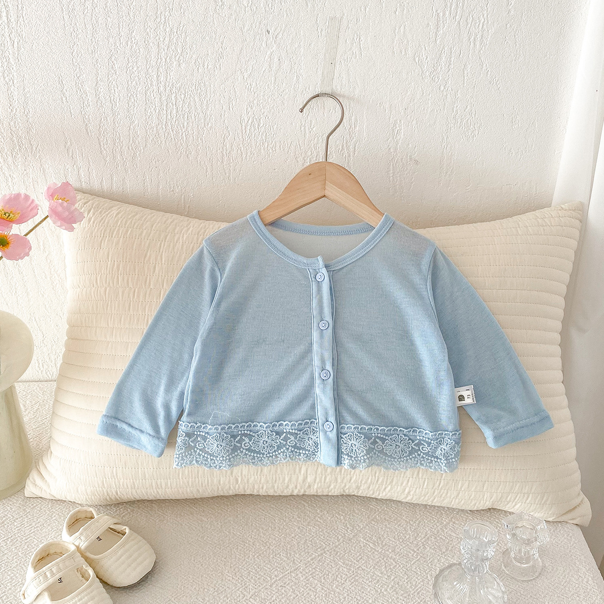 유아 카디건 여름 새 스타일 아기 소녀 밑단 레이스 얇은 코트 에어컨 셔츠 어린 소녀 겉옷