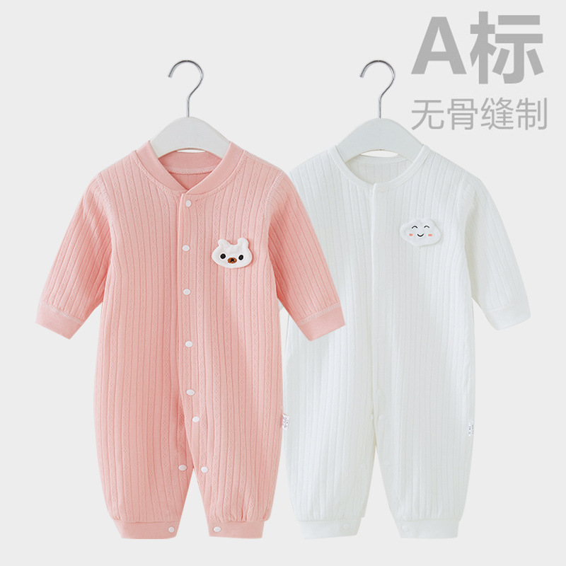 아기 봄과 가을 점프 수트 순수 코튼 신생아 하퍼 속옷 아기 소년과 소녀 긴 소매 뼈없는 등반 착용 벨리 보호 잠옷