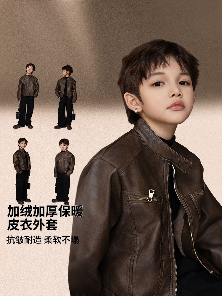 가죽 의류 2025 대외 무역 바람 국경 대외 무역 뜨거운 판매 소년 옷 국경 간 전자 상거래 재킷 소년스토어 가기