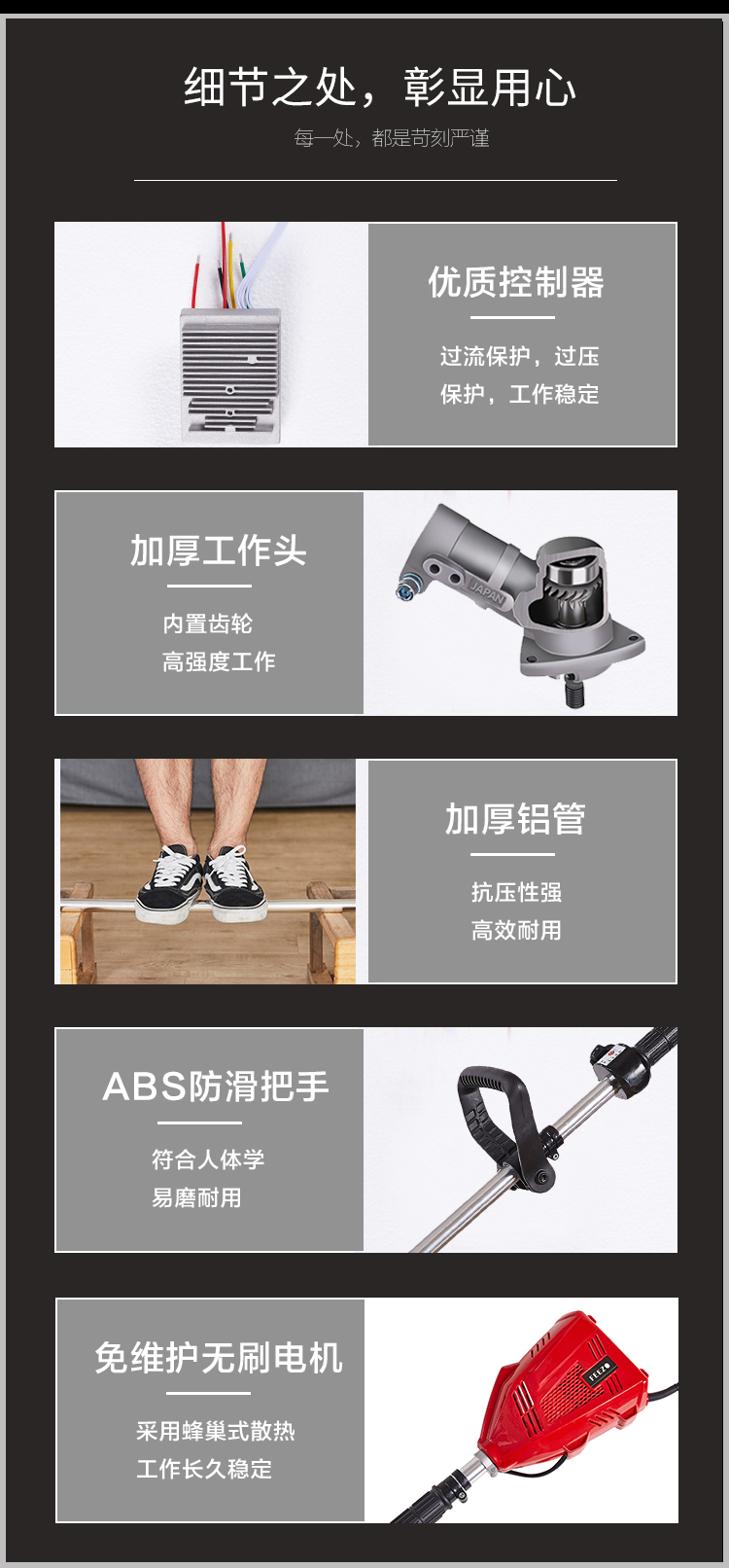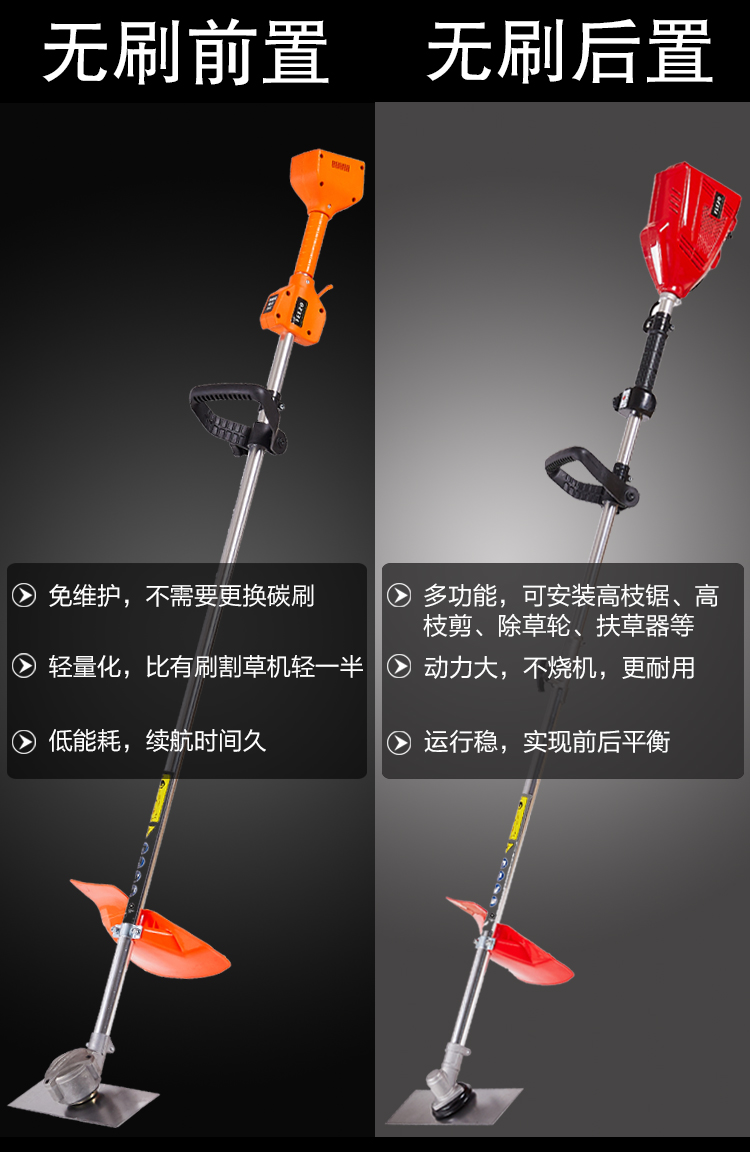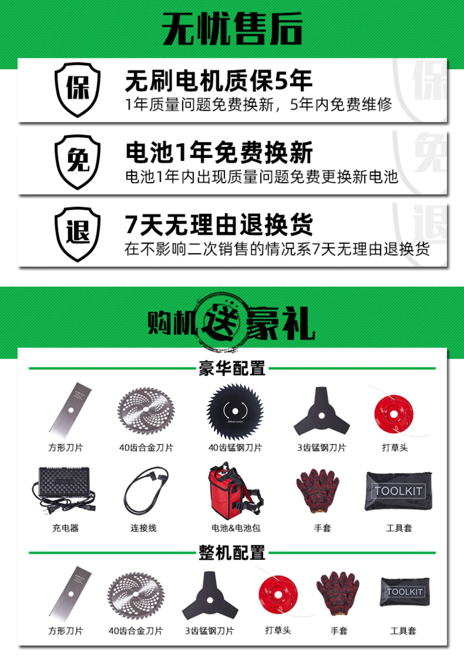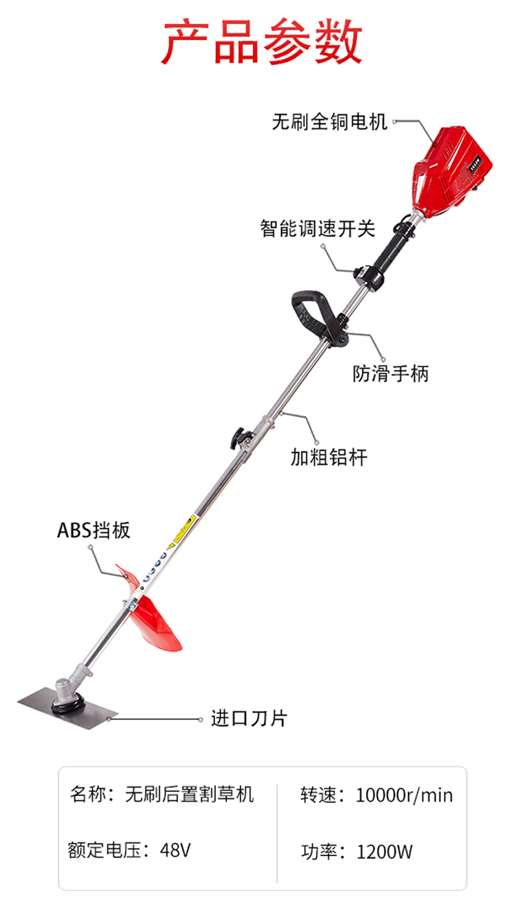 • 접이식 브러시리스 후면 48V20ah 트리밍 패키지, 전원 디스플레이, 2단 속도 조절