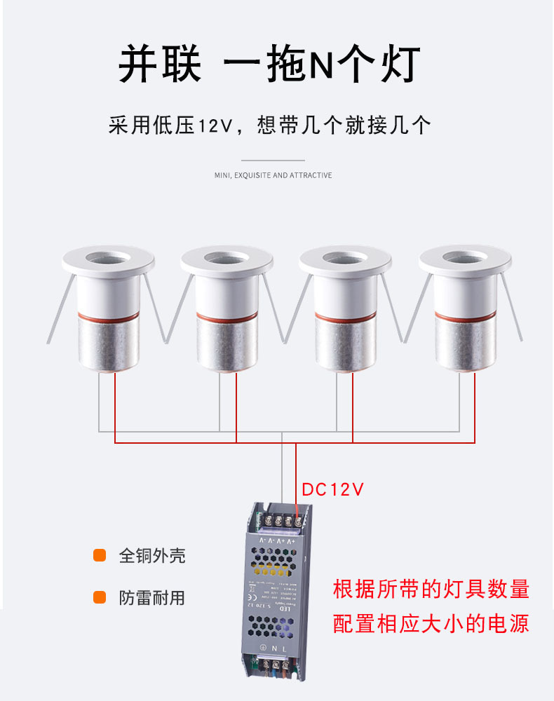 • 항상 밝은 12V, 개구부 15mm, 따뜻한 조명
