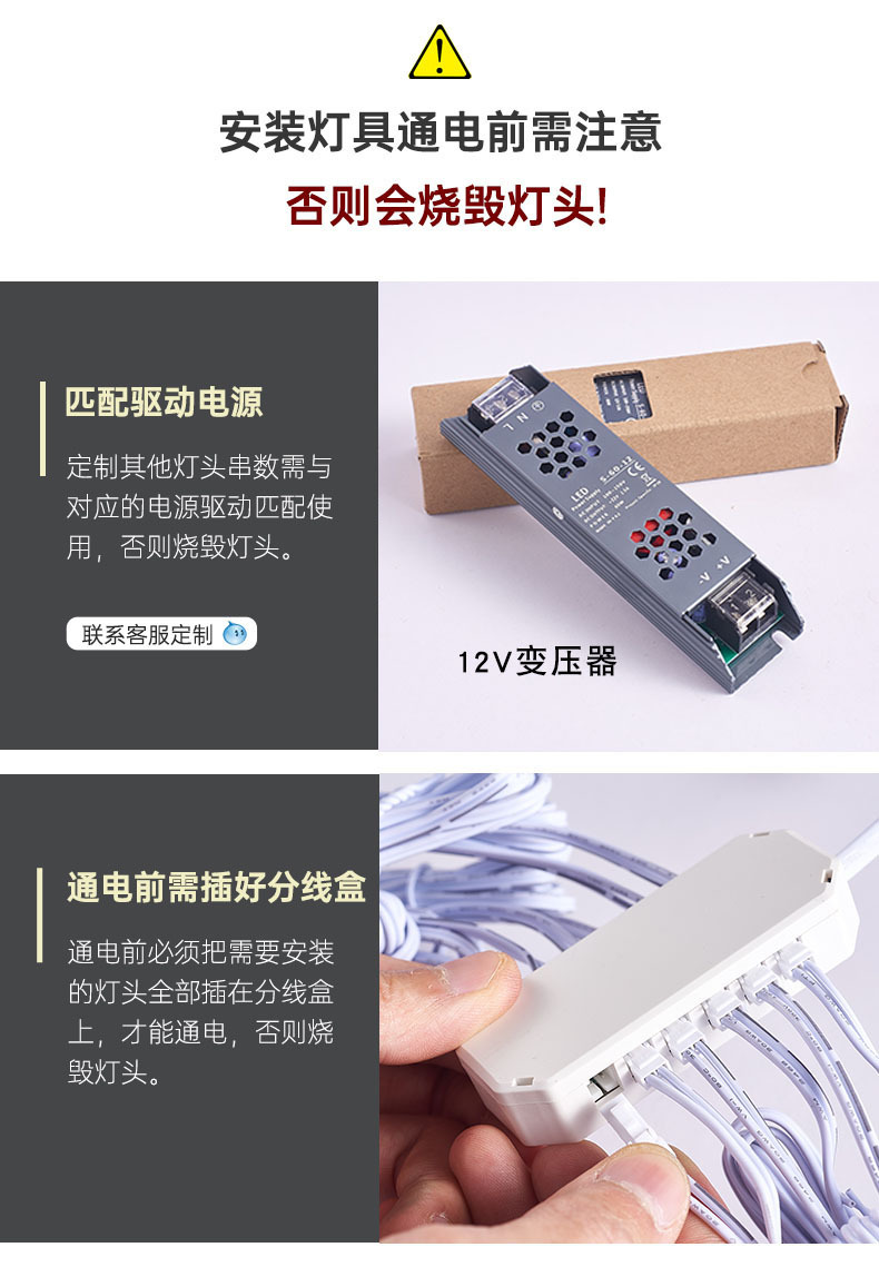 • 60와트 변압기 12V(40개의 조명에 연결 가능)