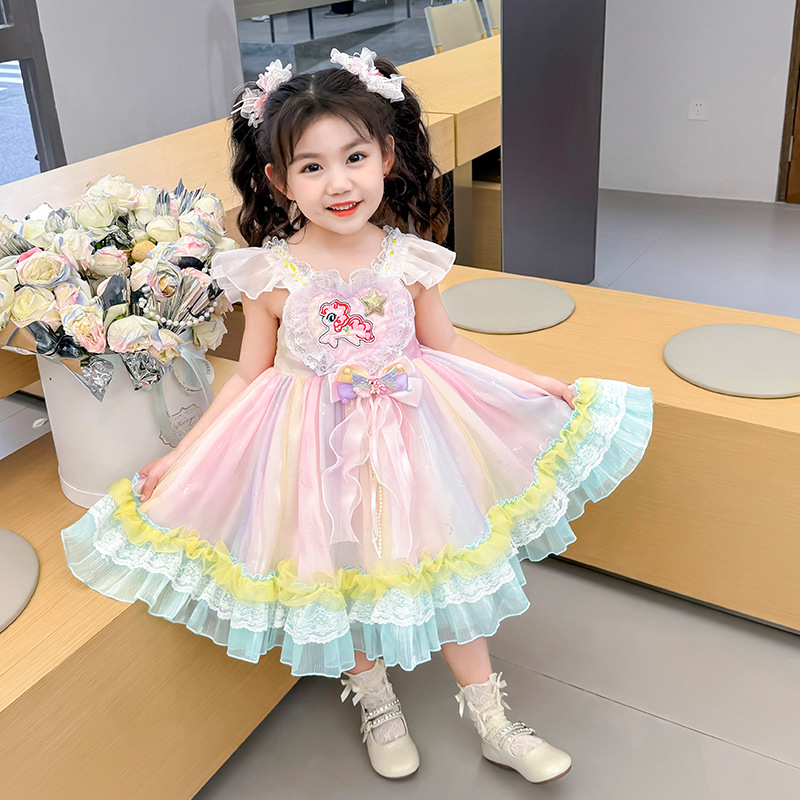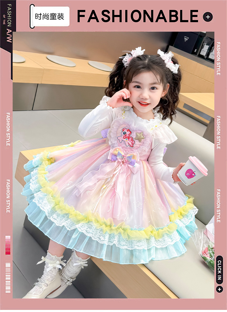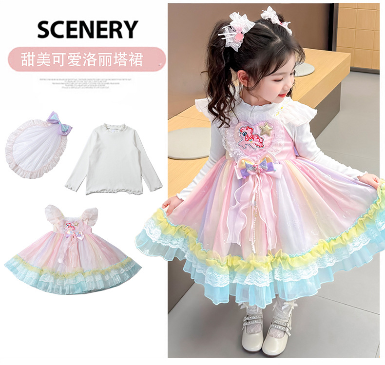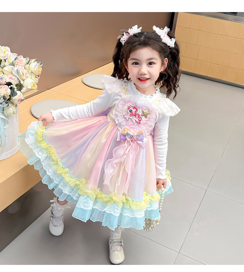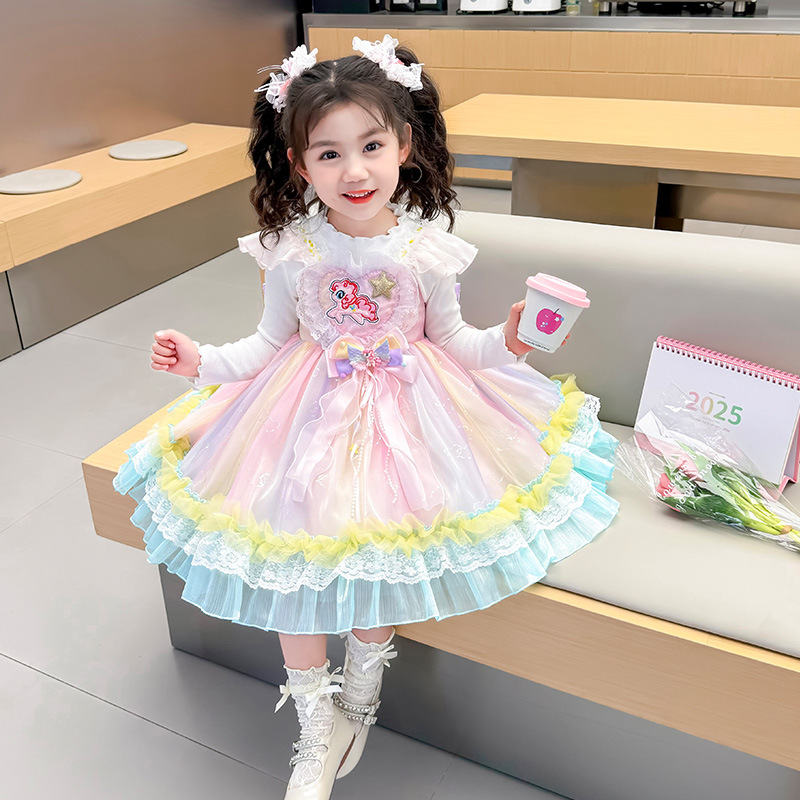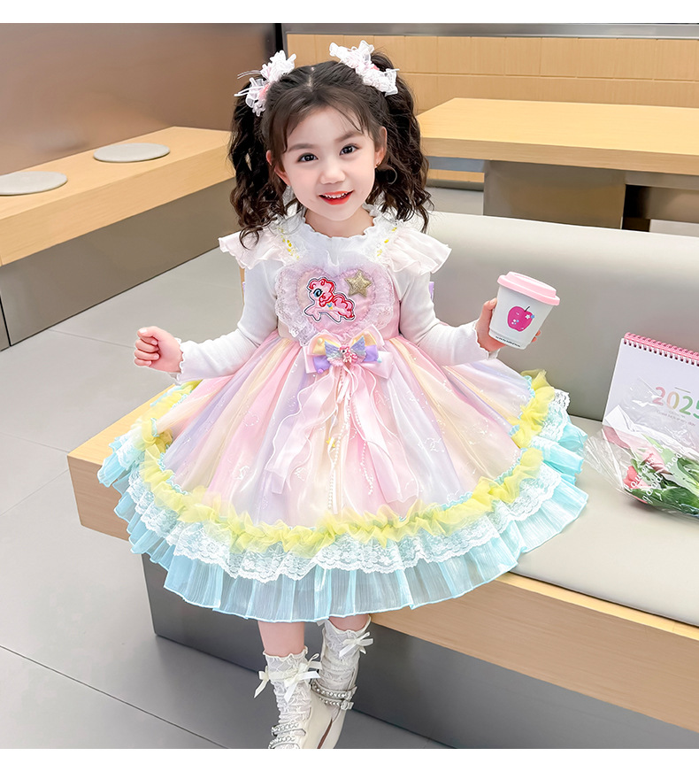 소녀 봄과 가을 긴 소매 포니 폴리 원피스 2025 새로운 어린이 봄 로리타 아기 공주 원피스