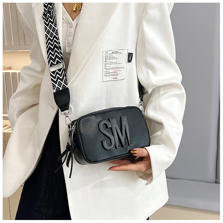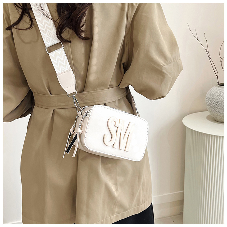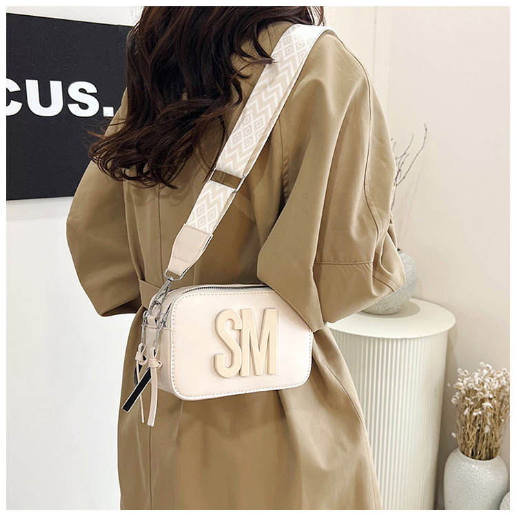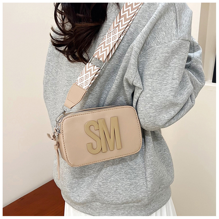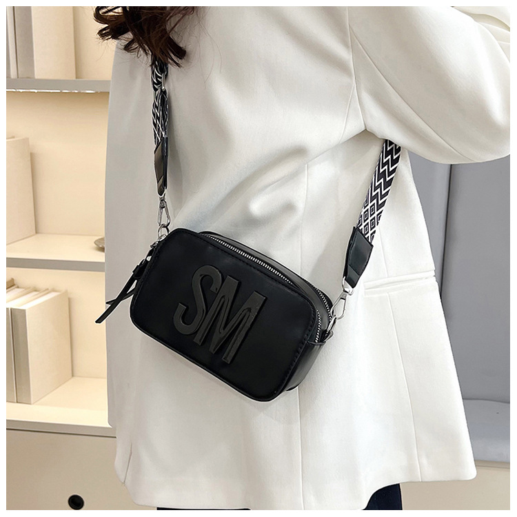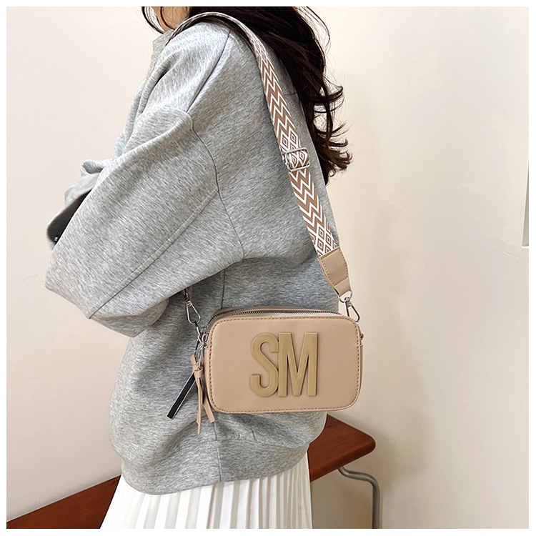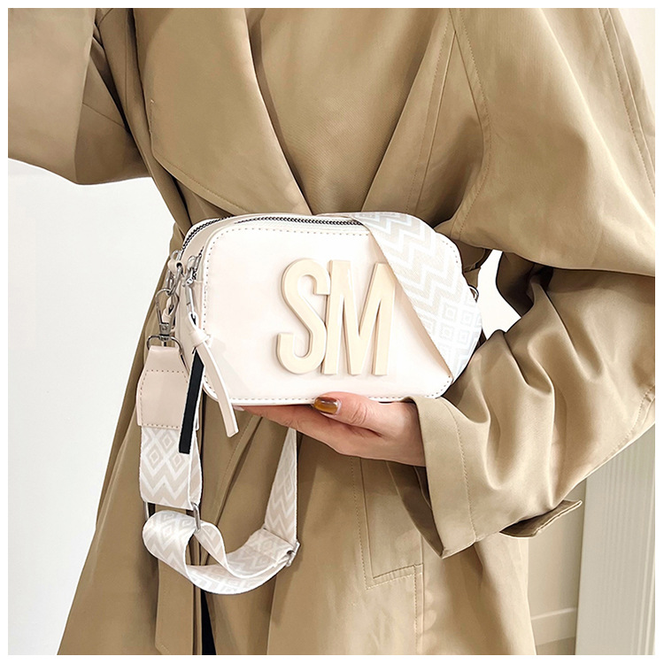 국경 간 트렌디 한 올 매치 백 섬유 작은 스퀘어 가방 캐주얼 숄더 백 라이트 럭셔리 크로스 바디 백 와이드 숄더 스트랩 레터 여성용 가방스토어 가기