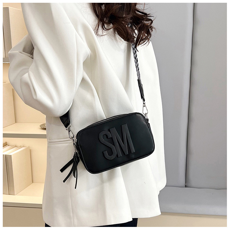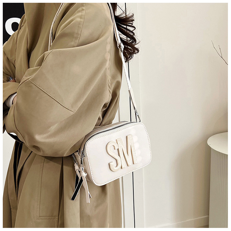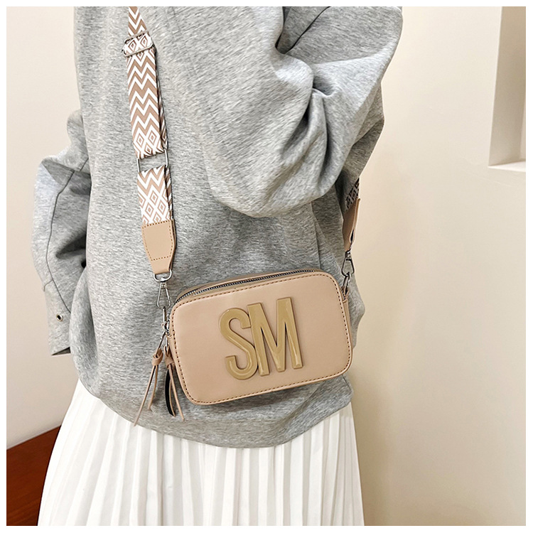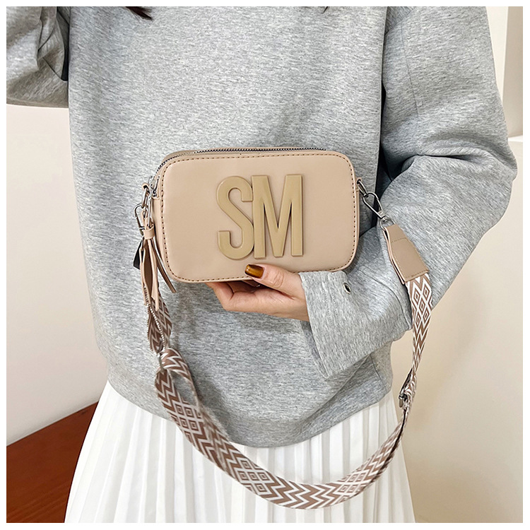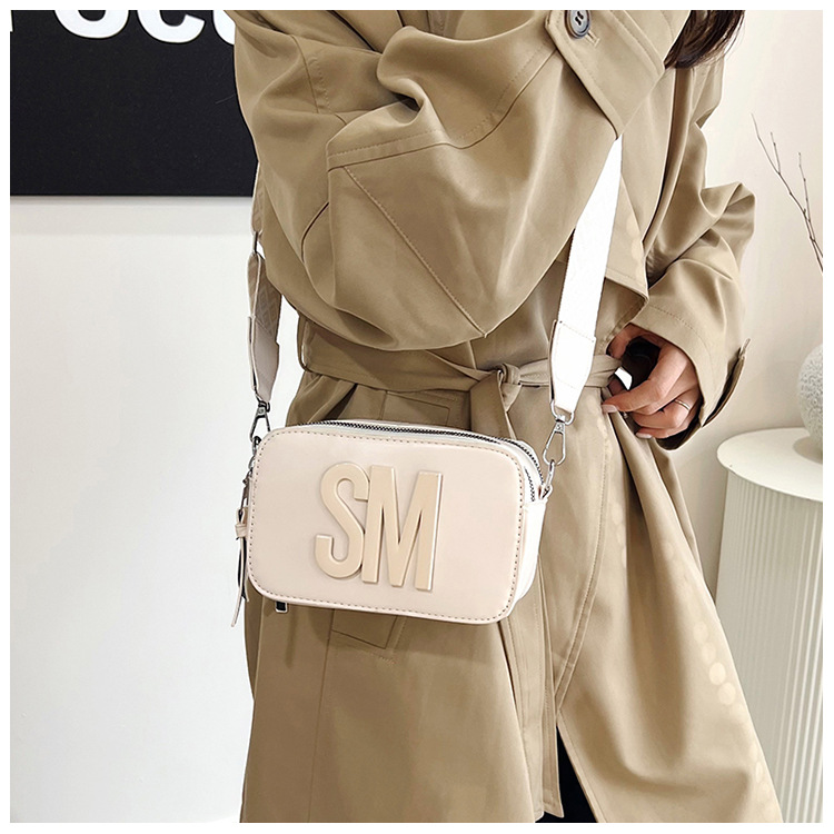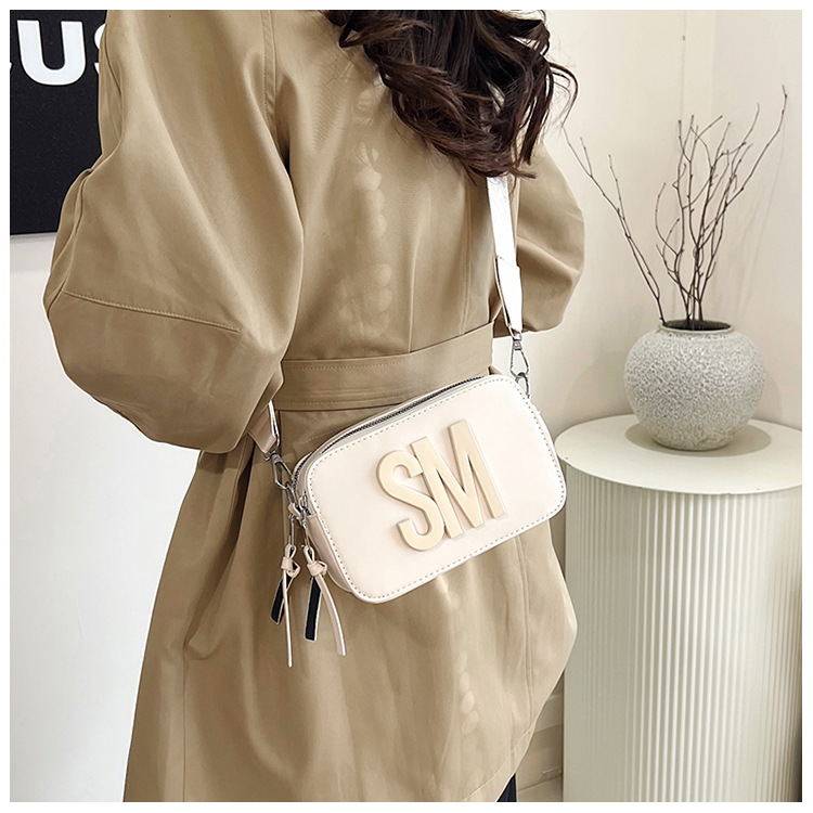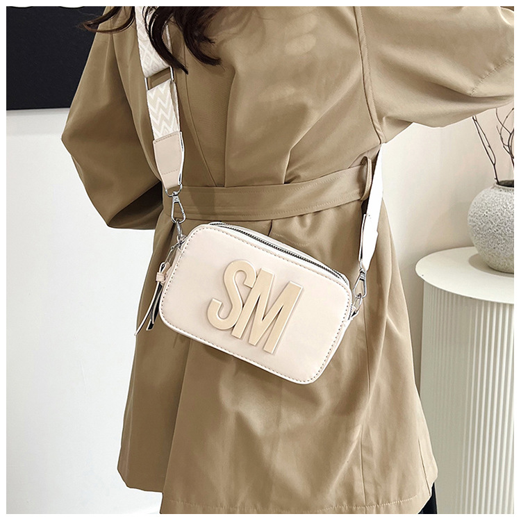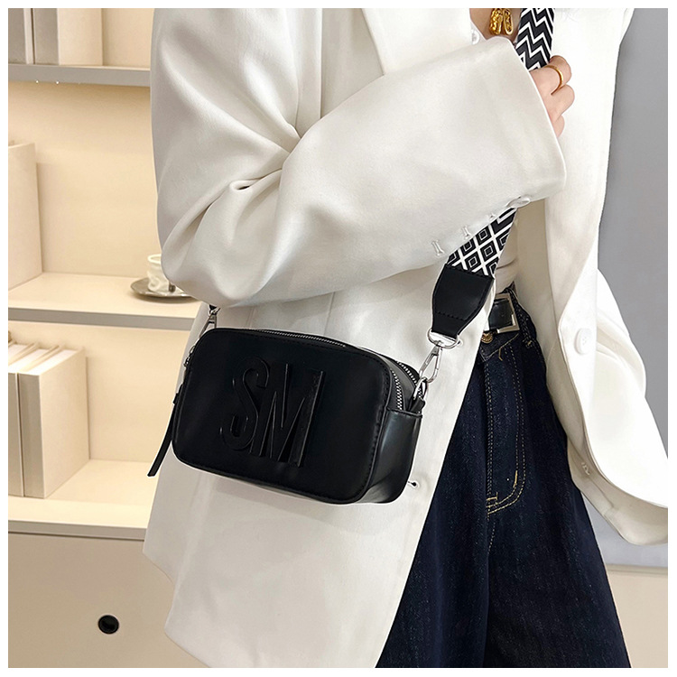 국경 간 트렌디 한 올 매치 백 섬유 작은 스퀘어 가방 캐주얼 숄더 백 라이트 럭셔리 크로스 바디 백 와이드 숄더 스트랩 레터 여성용 가방스토어 가기