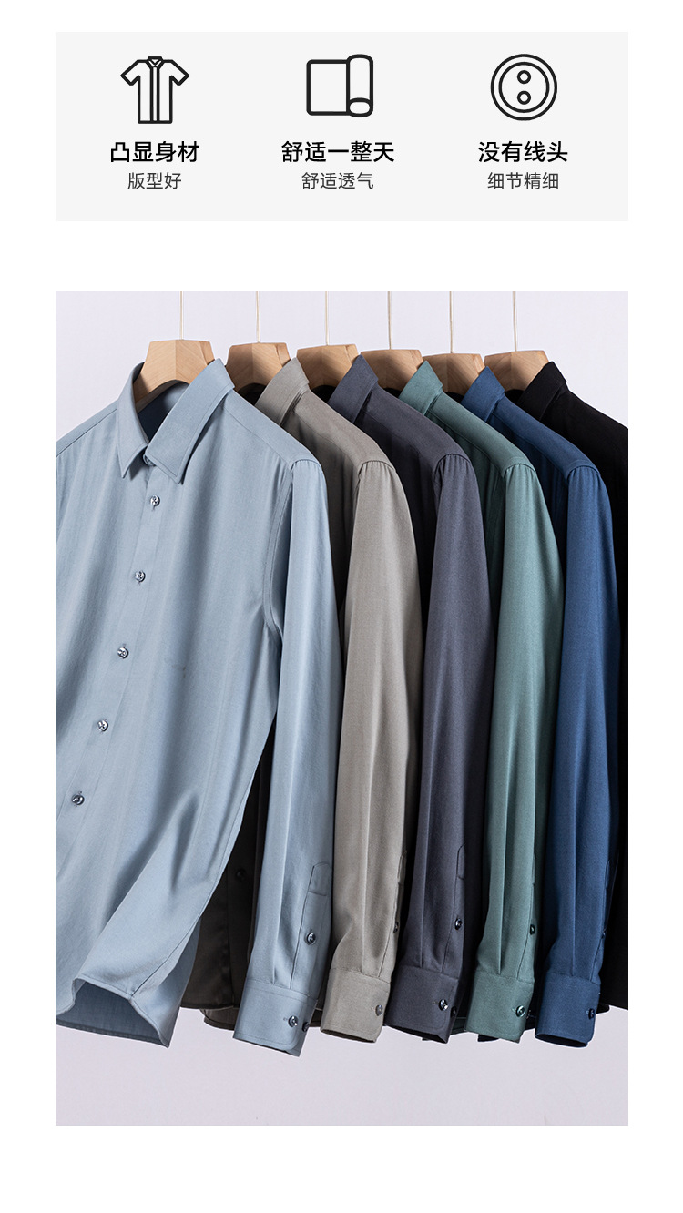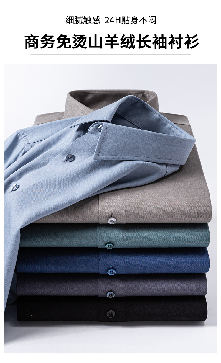 캐시미어 남성 긴팔 셔츠 25 새로운 단색 비즈니스 캐주얼 패션 비 다림질 통기성 인치 셔츠 도매스토어 가기